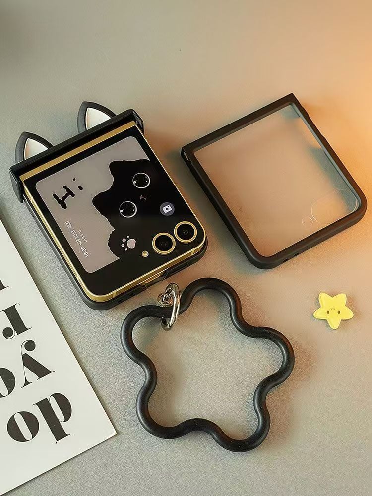 Cat Ears Black Cat Phone Case, Suitable For Galaxy Z Flip 3/Galaxy Z Flip 4/Galaxy Z Flip 5/Galaxy Z Flip 6