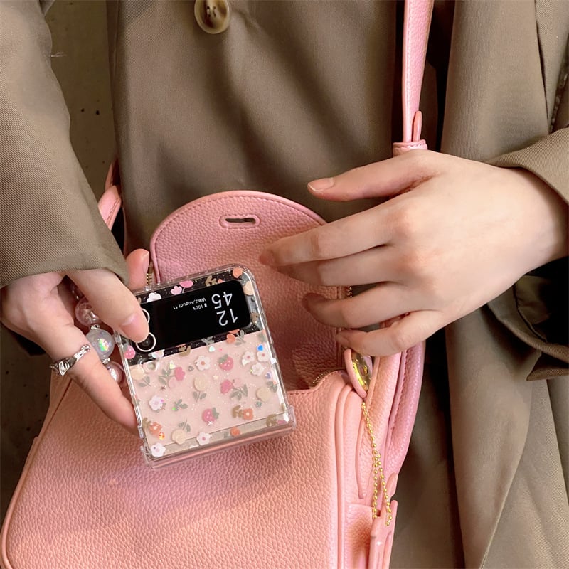 Introducing the stunning Epoxy Glitter Orange Floral Phone Case, specially designed for the Galaxy Z Flip 3, 4, 5, and 6. This eye-catching case features a vibrant orange hue adorned with delicate floral patterns, making it a perfect accessory for anyone looking to add a touch of charm to their device.