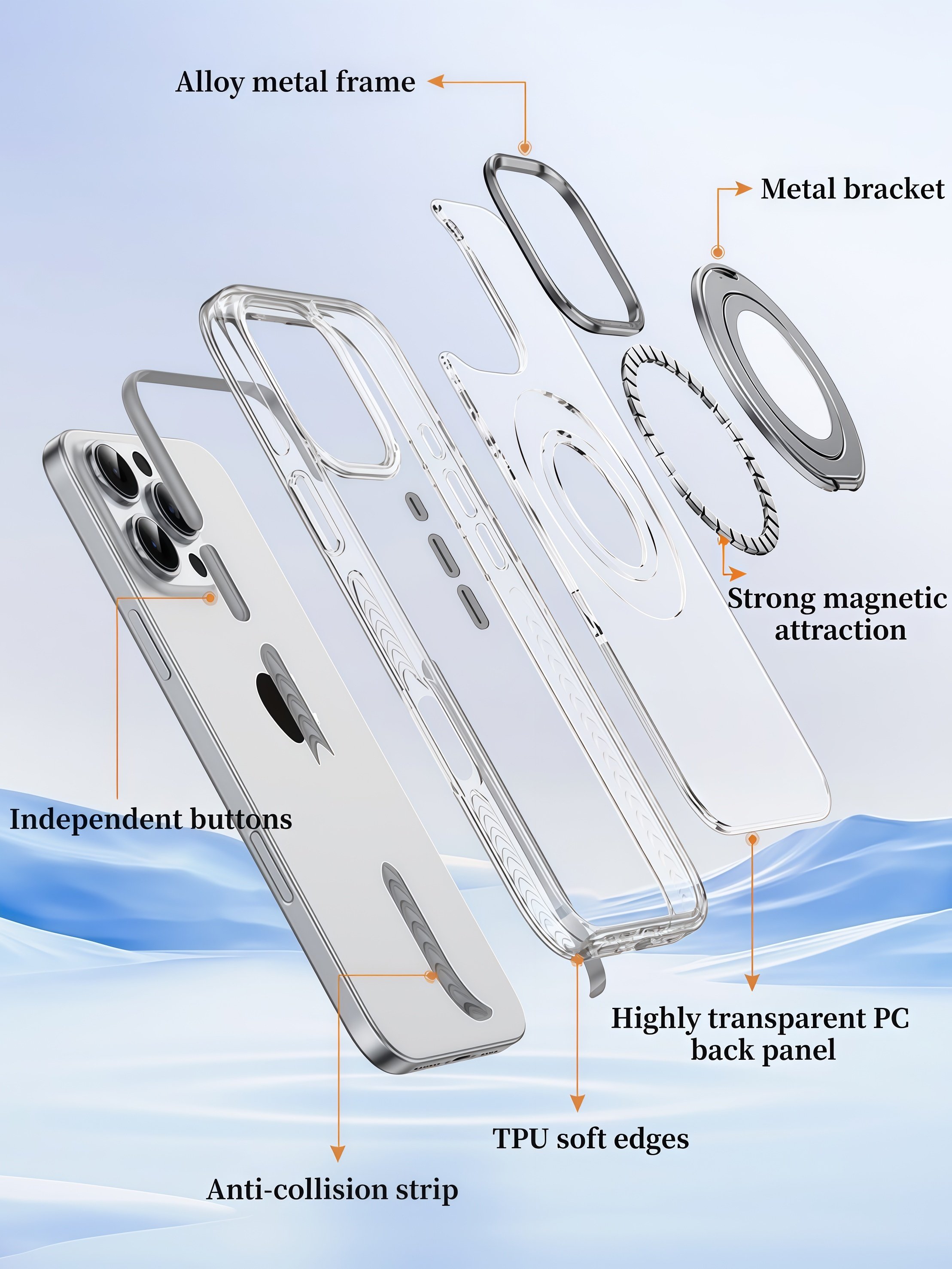 38 precisely positioned internal magnets lock securely to MagSafe chargers, ensuring effortless wireless charging without alignment worries.