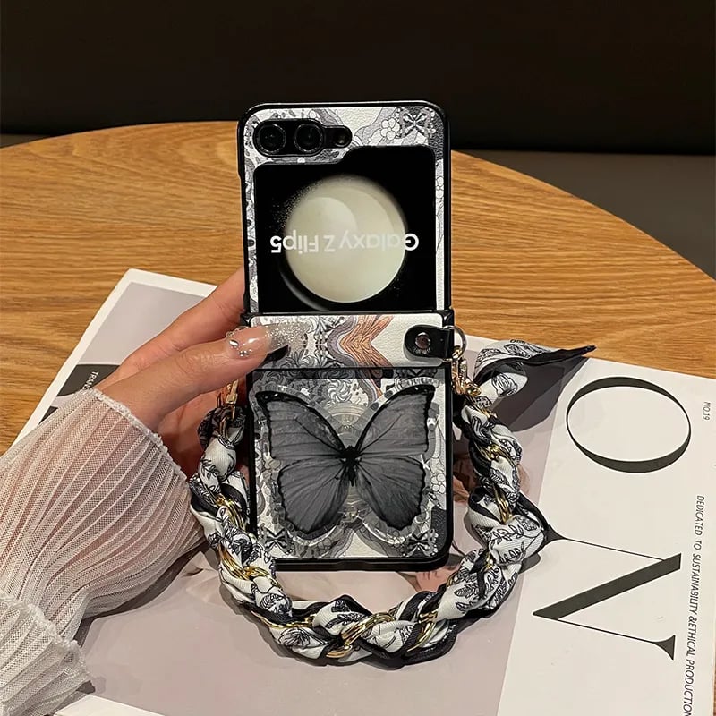 Designed with a stylish butterfly stand, this case offers both beauty and functionality. The foldable kickstand provides a convenient hands-free experience, perfect for video calls, streaming, or browsing.