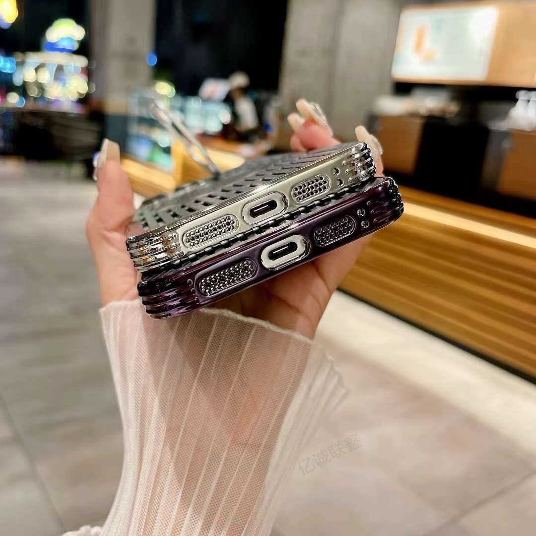 Carbon Fiber Hollow Heat Dissipation Magnetic Phone Case With Lens Holder For iPhone 16 15 14 13 Series