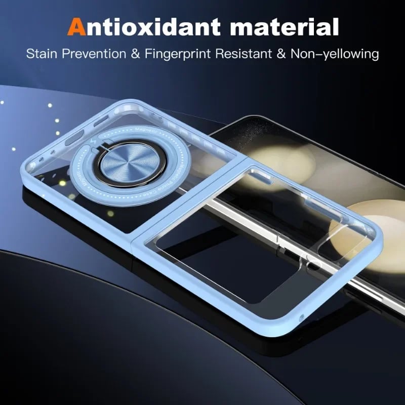 Our transparent phone case is specifically designed for the Galaxy Z Flip 5 and Galaxy Z Flip 6. It ensures full access to all buttons and ports without compromising the phone's sleek design.