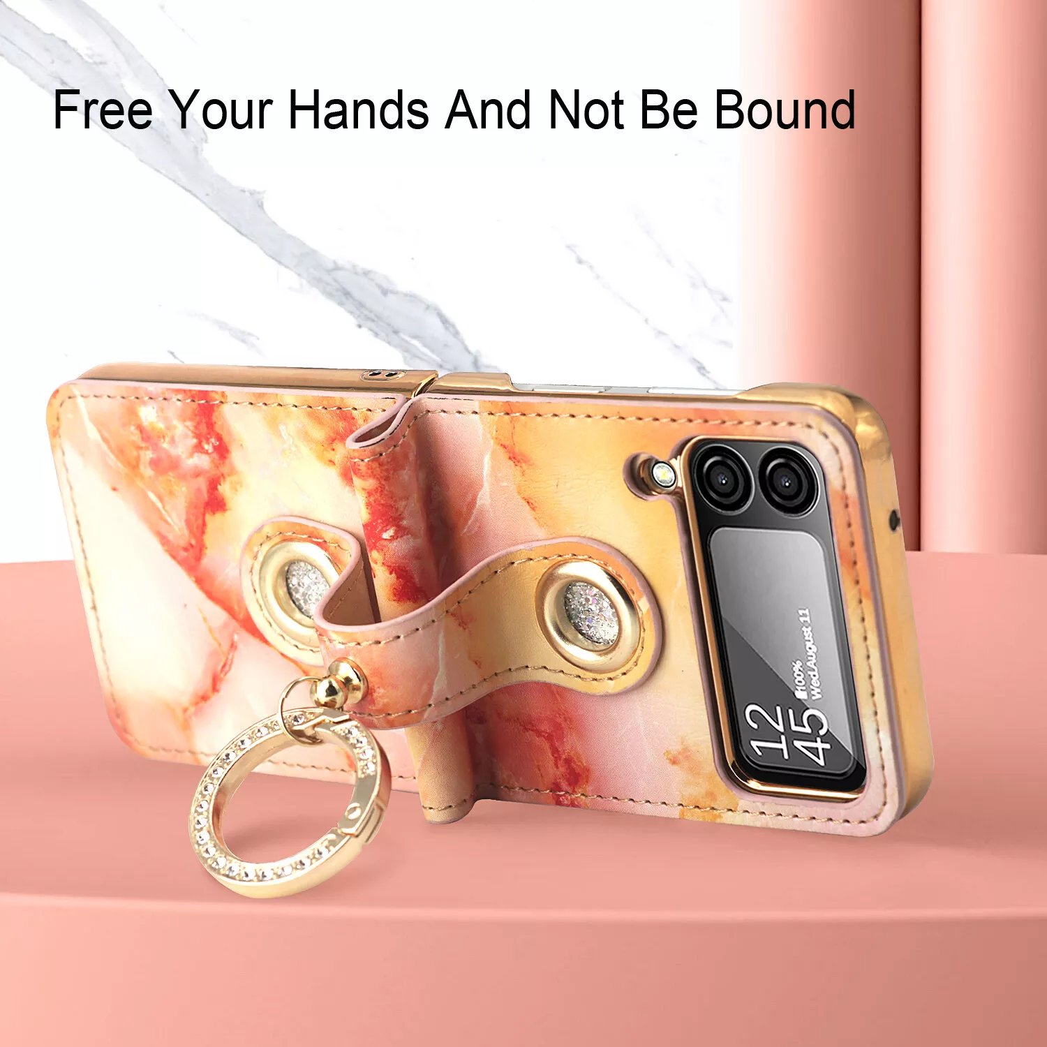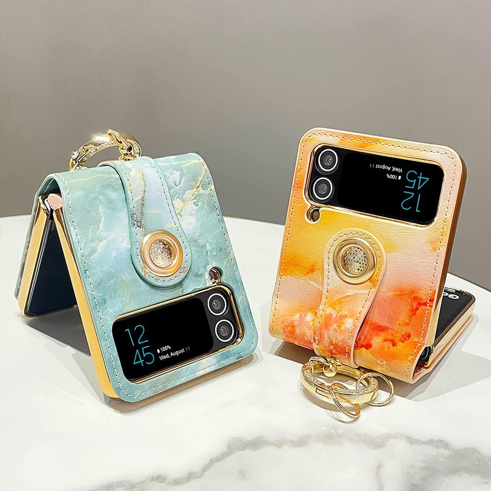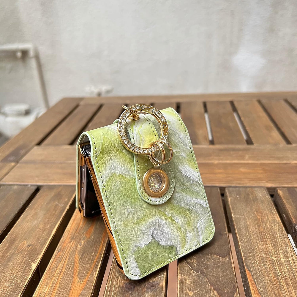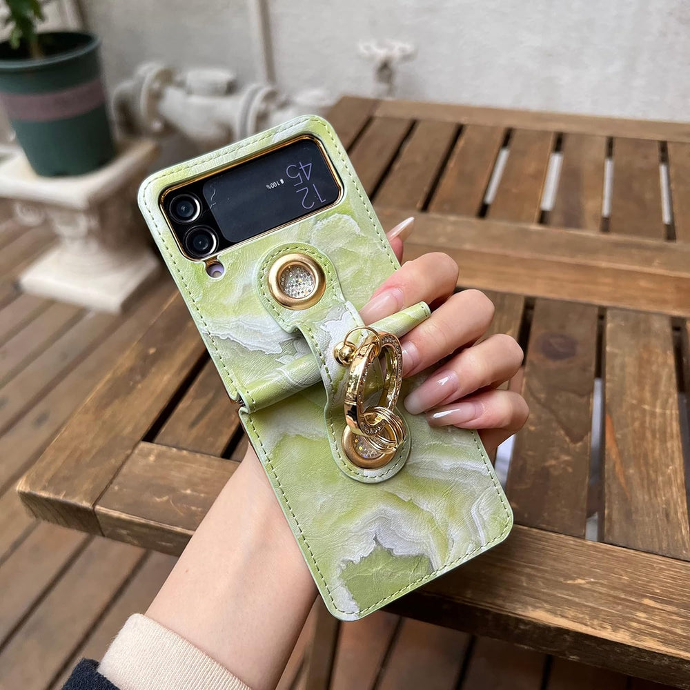 Galaxy Z Flip 3/Galaxy Z Flip 4/Galaxy Z Flip 5/Galaxy Z Flip 6 | Soft marbled leather phone case with luxurious glitter ring