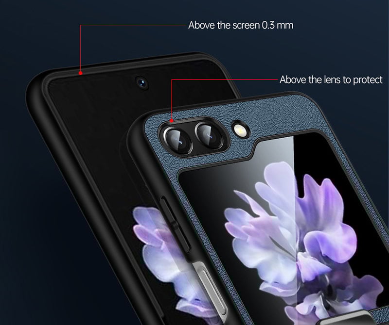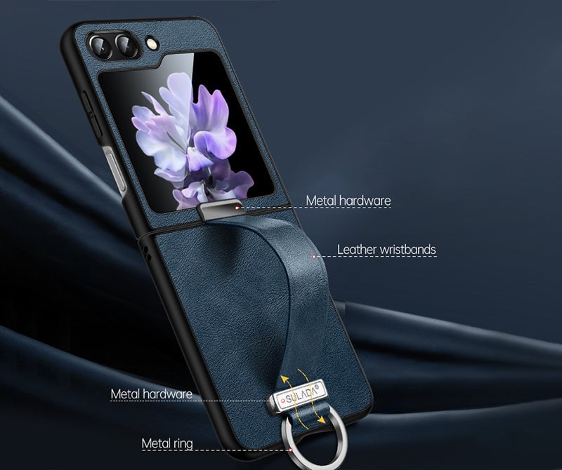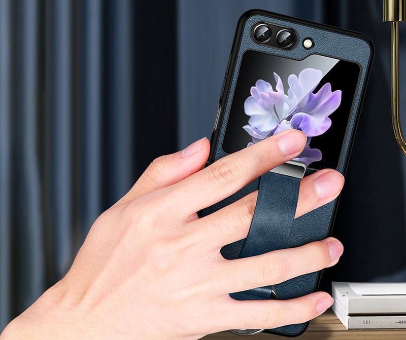 The Galaxy Z Flip Series Leather Wristband Case features a convenient grip on the back for support, helping you hold your phone confidently and preventing accidental drops.