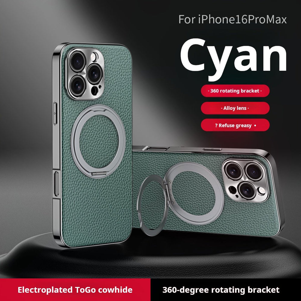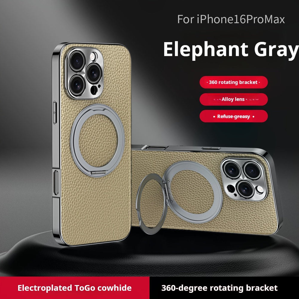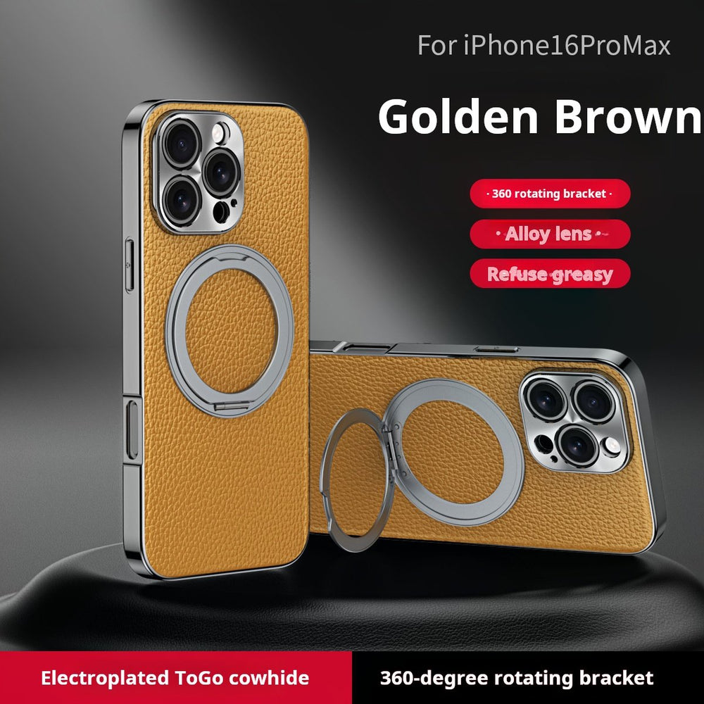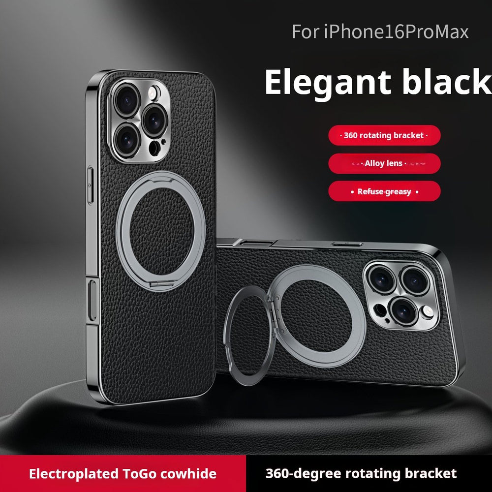 Featuring a built-in ring bracket, this case offers multiple functions. It serves as a secure grip, a convenient stand for hands-free viewing, and a metallic accent that complements the leather texture. The 360° rotation ensures optimal usability for different angles.