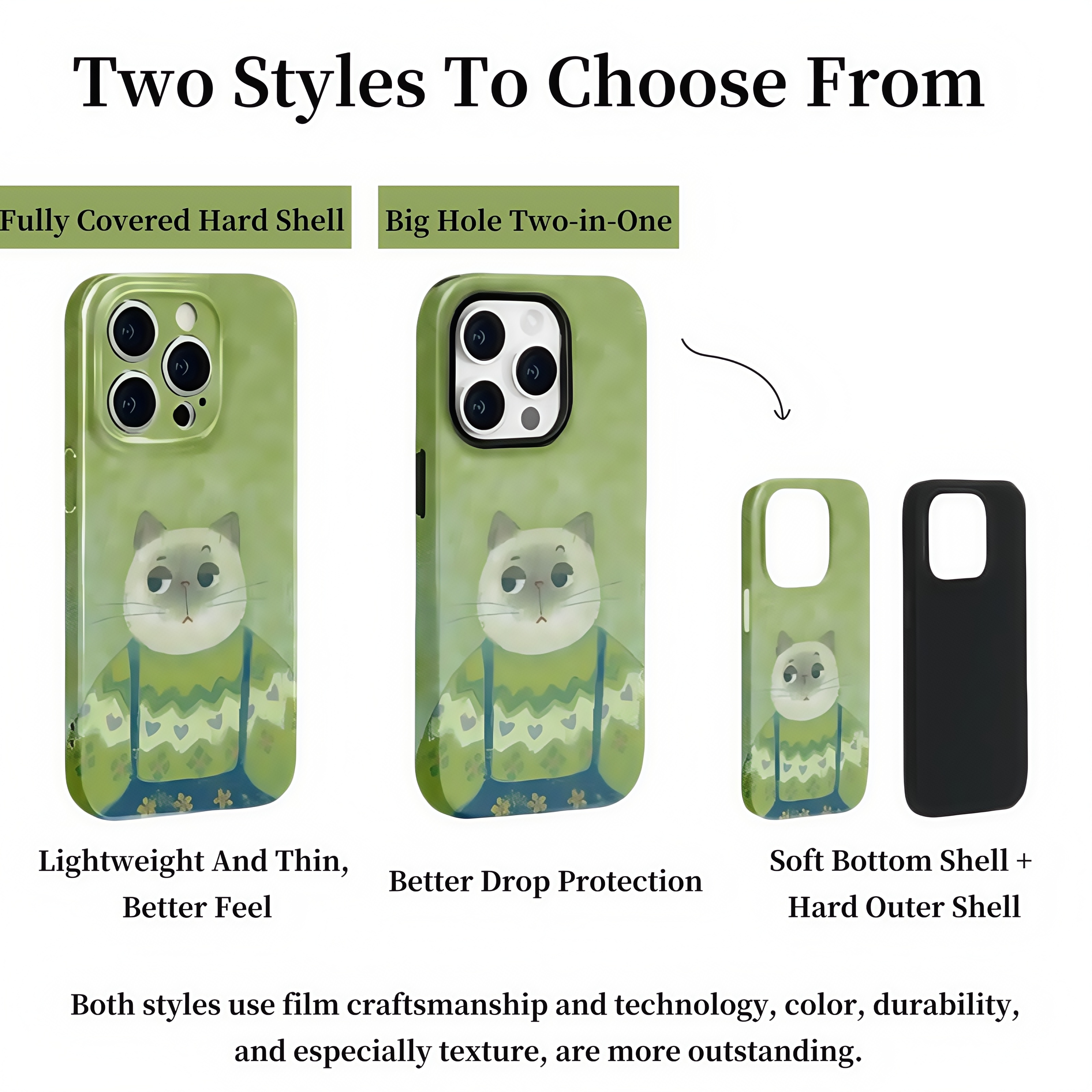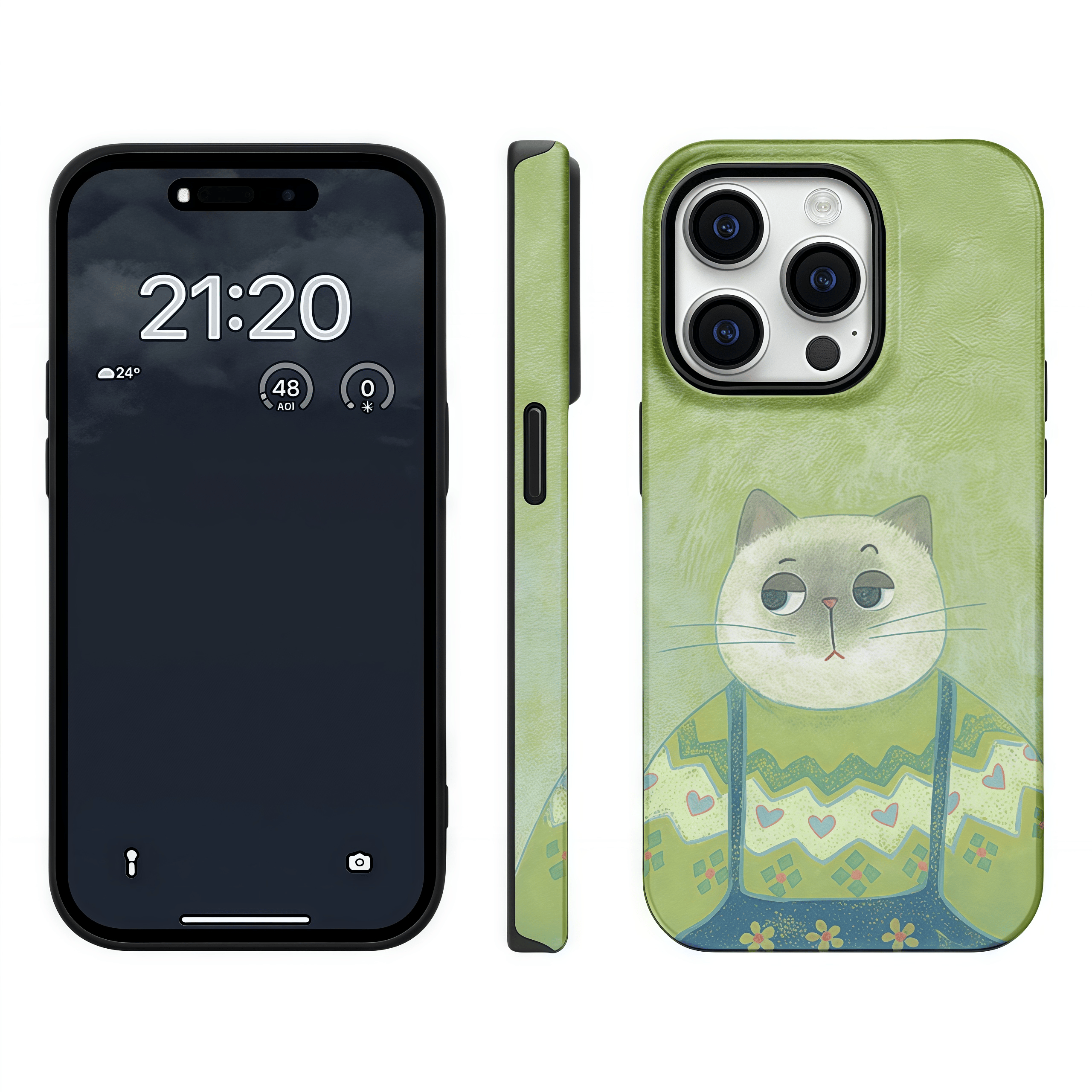 The full-wrap illustration is crafted using advanced film technology for long-lasting color and texture. Whether you’re into quirky art, cozy vibes, or simply love cats, this unique design makes your phone stand out while staying soft to the touch.