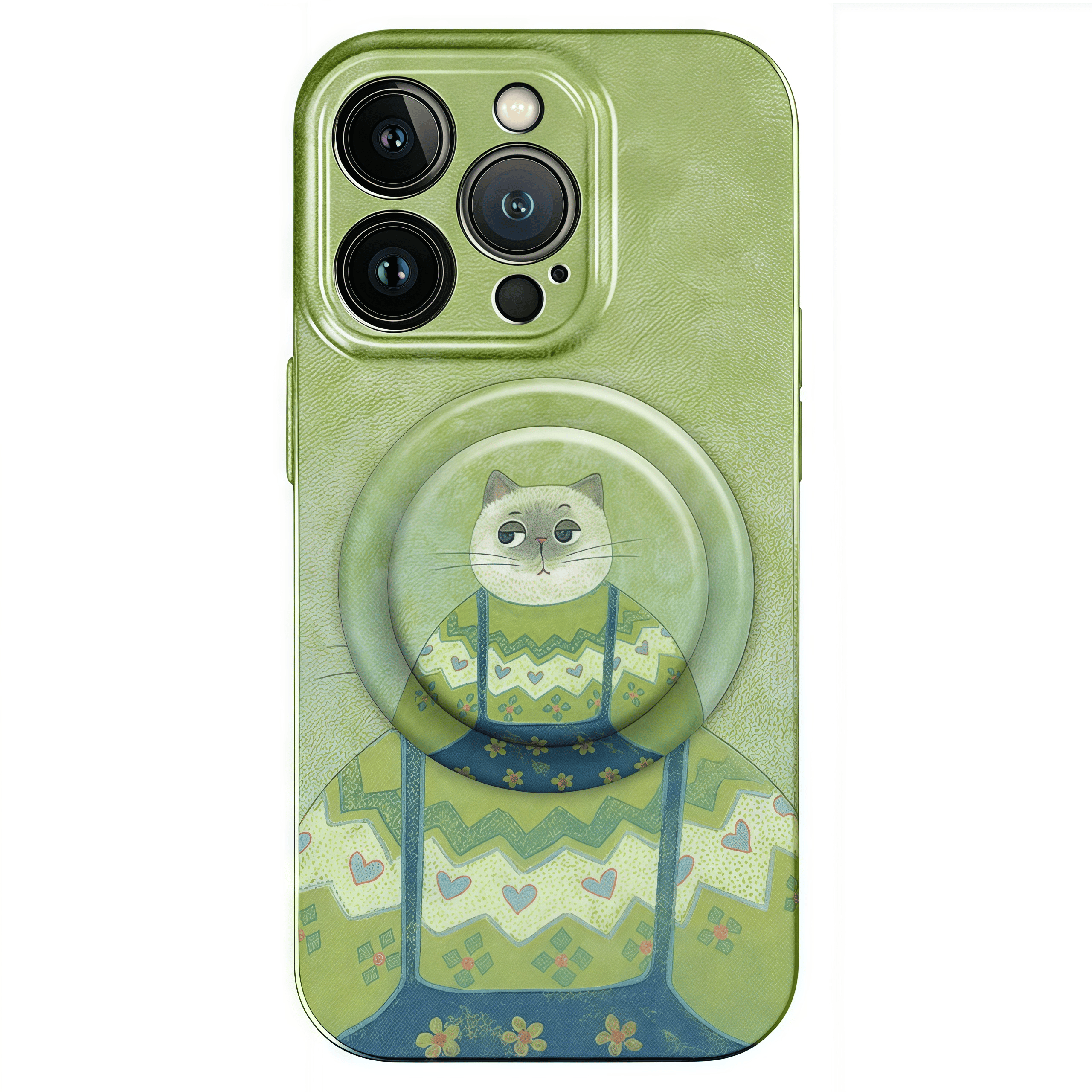 This phone case blends artistic charm with magnetic performance. Featuring a hand-drawn sleepy cat on a soft green background, it turns your iPhone into a pocket-sized canvas—with full MagSafe compatibility built in.