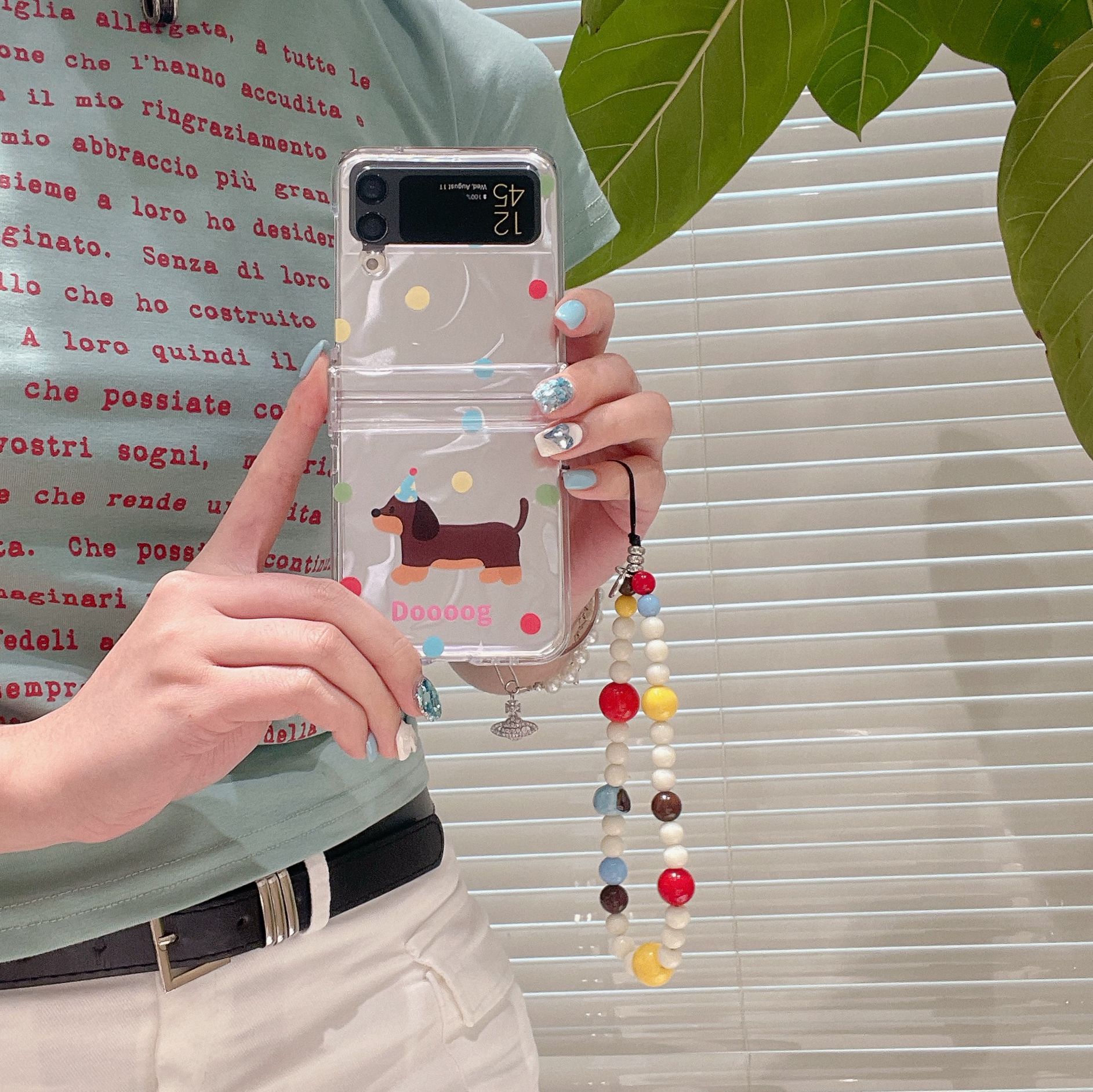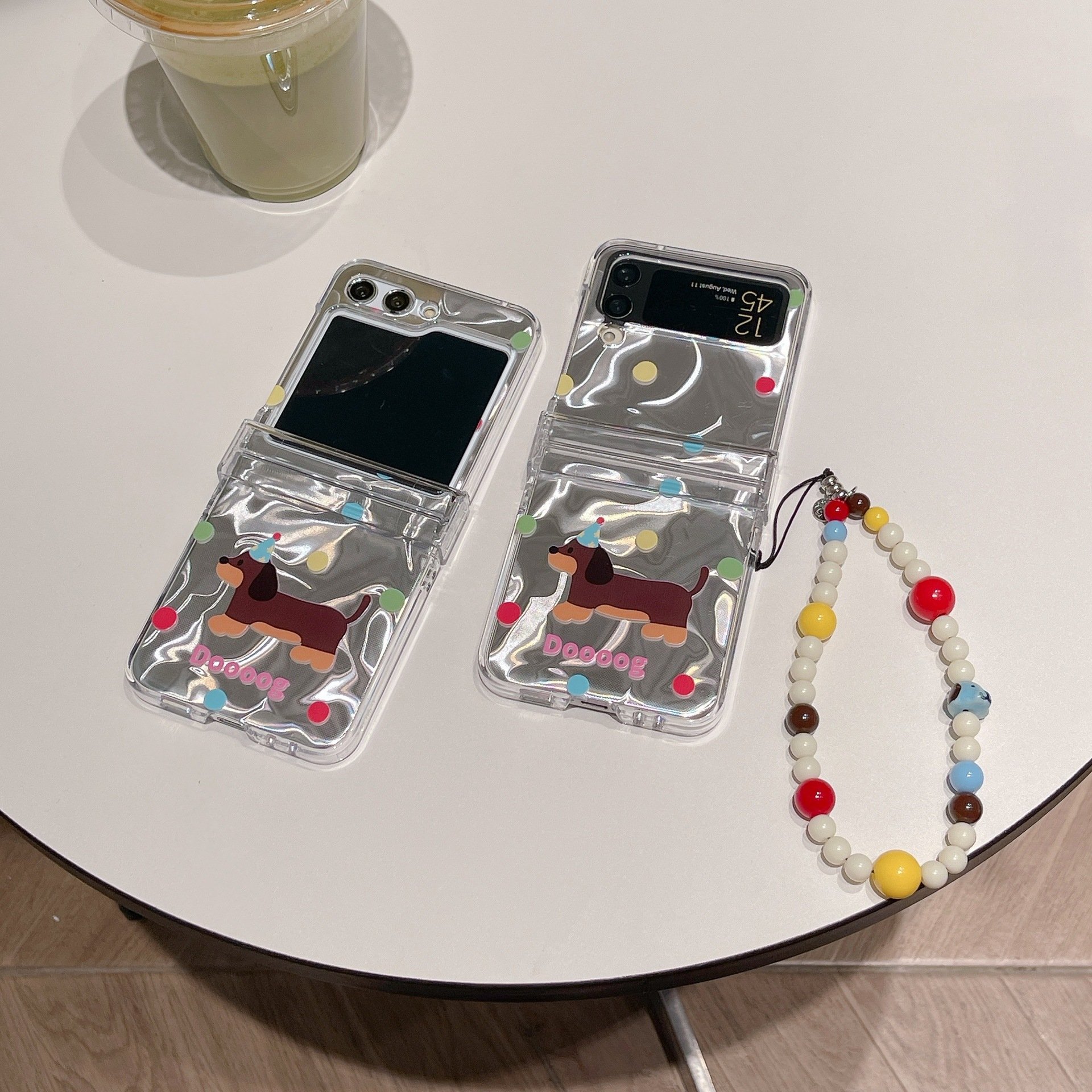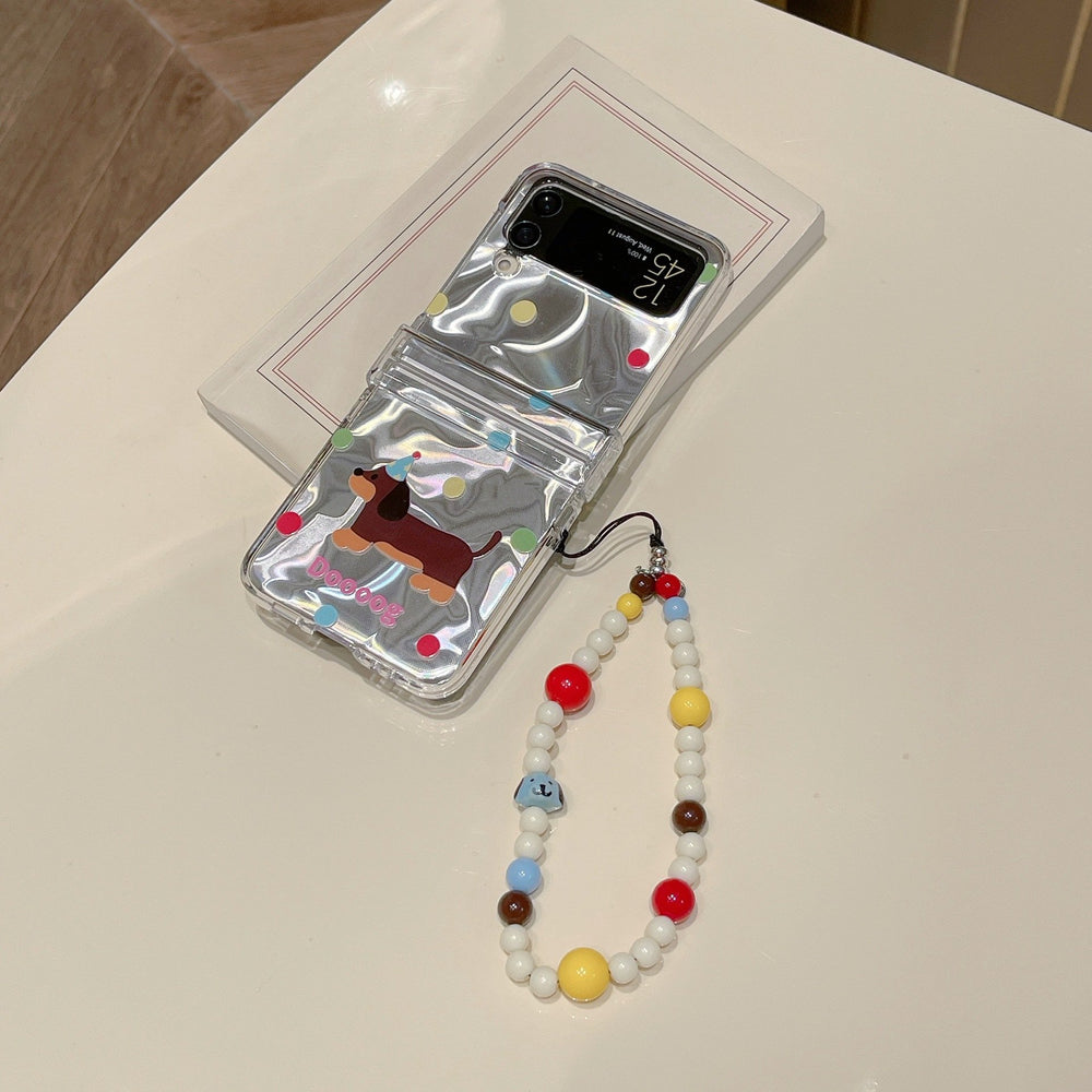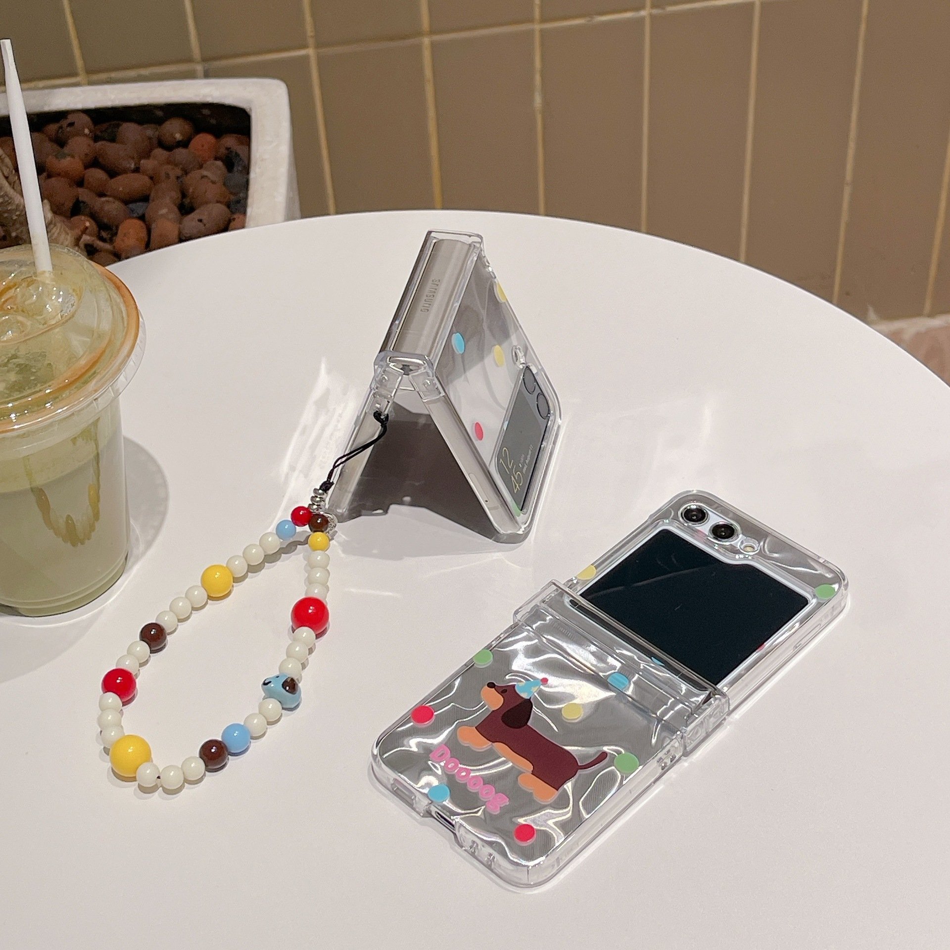 Colorful Polka Dot Dachshund Phone Case, Compatible with Galaxy Z Flip 3/Galaxy Z Flip 4/Galaxy Z Flip 5/Galaxy Z Flip 6