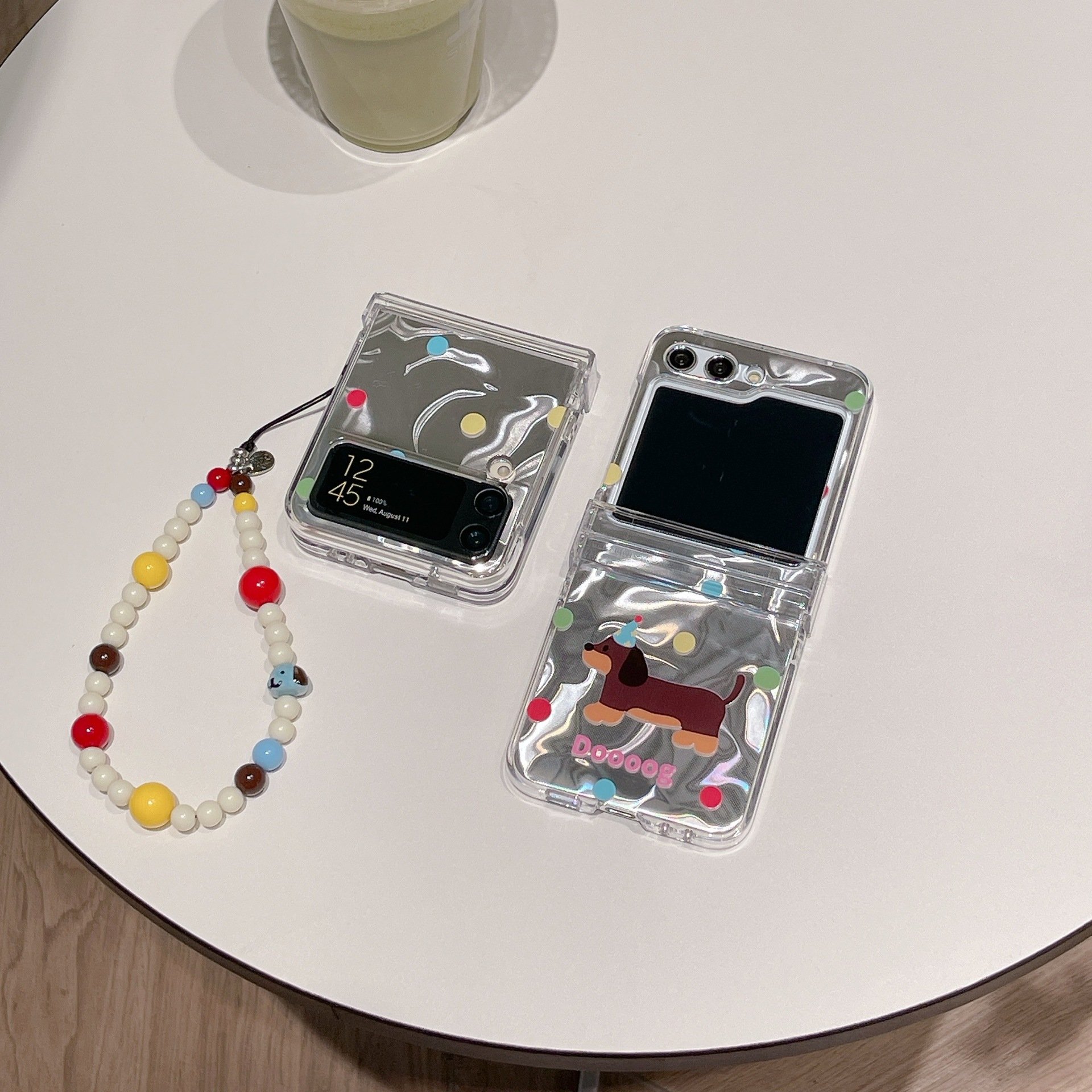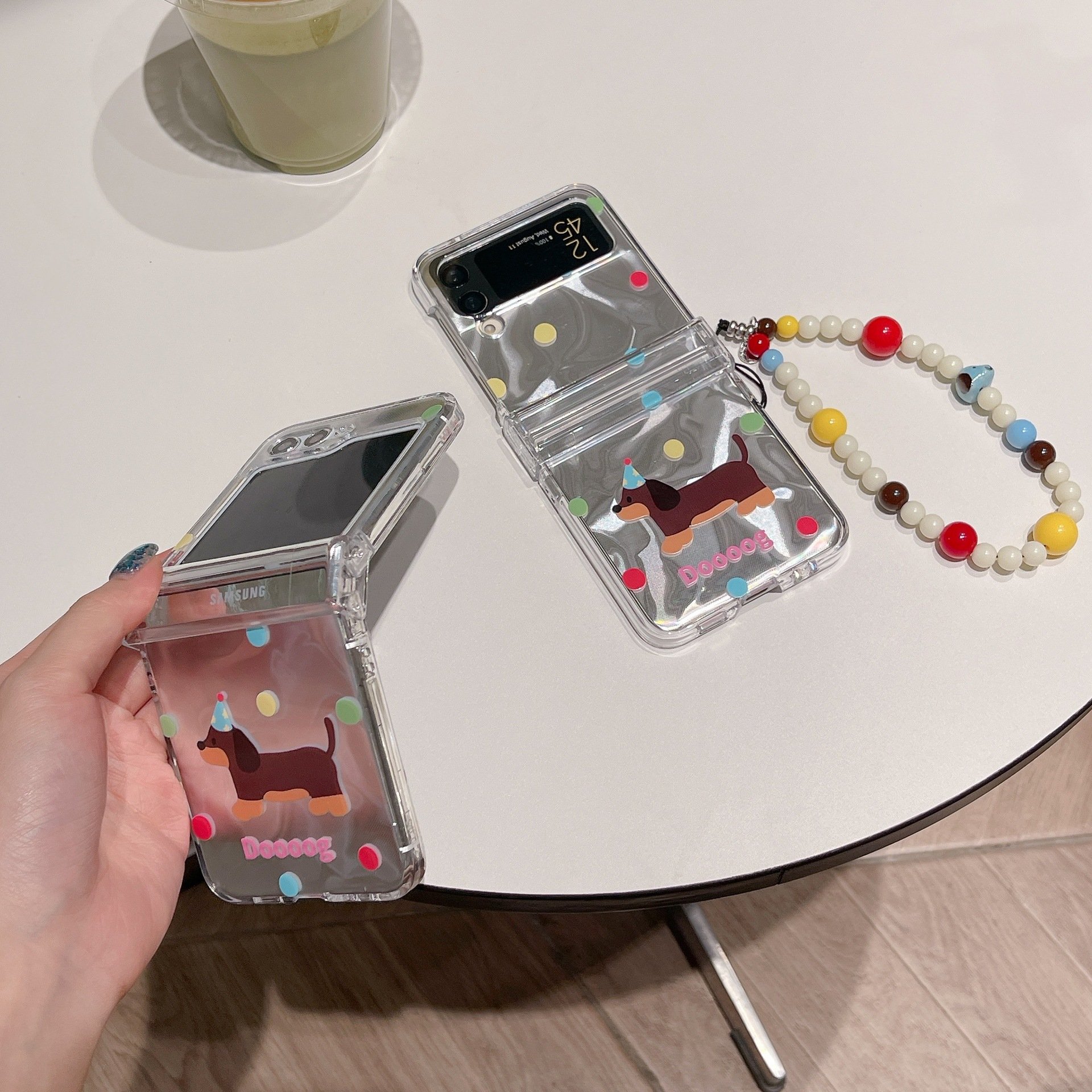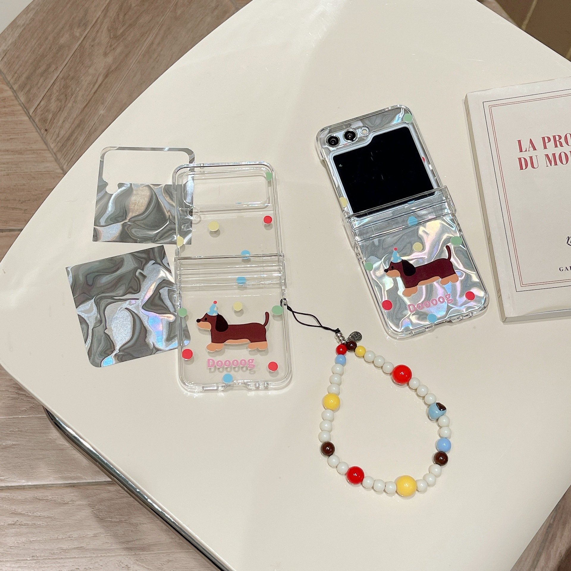 Colorful Polka Dot Dachshund Phone Case, Compatible with Galaxy Z Flip 3/Galaxy Z Flip 4/Galaxy Z Flip 5/Galaxy Z Flip 6