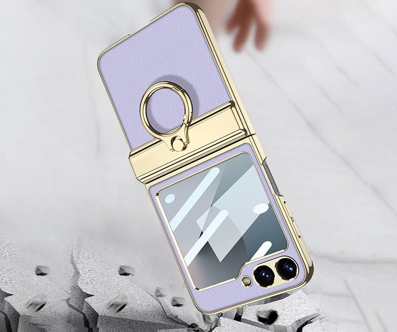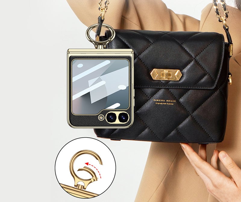 Breaking through the traditional mobile phone case design, it uses high-quality luxury leather, which feels luxurious and more delicate. Equipped with high-definition small screen tempered film to protect your mobile phone screen. Metal ring buckle design, can be rotated and folded at will. The stand function allows you to watch dramas anytime and anywhere, freeing your hands.