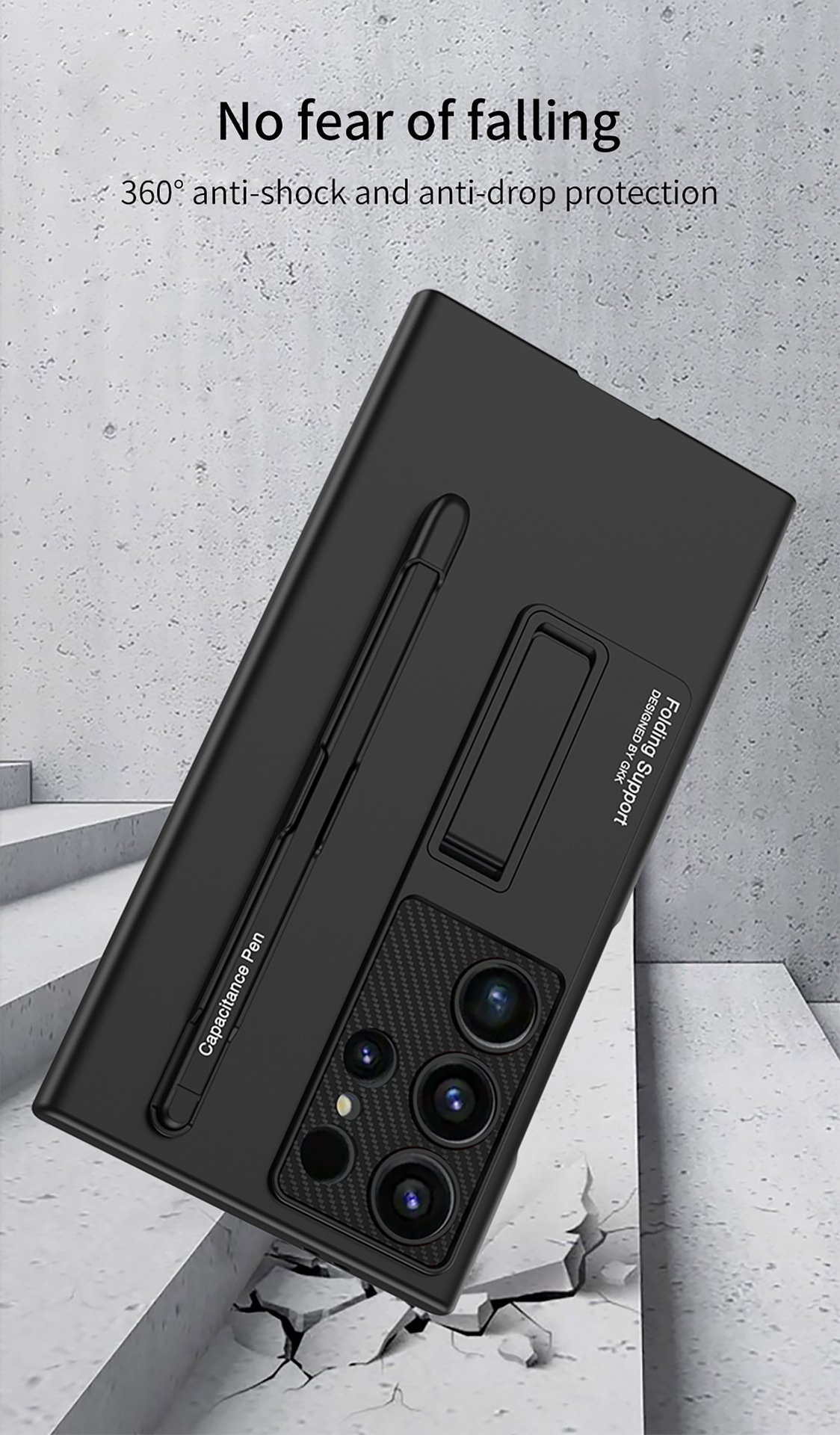 Frosted invisible stand phone case with pen case and stylus for Galaxy S24 S23 S22 series