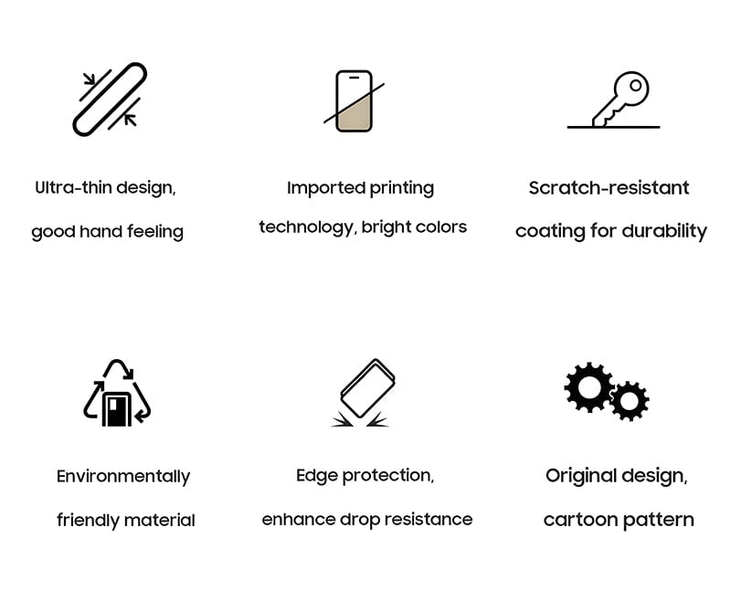The four corners of the mobile phone case are reinforced and anti-drop, effectively absorbing shock and buffering external impact, and protecting the mobile phone in all directions.The raised lips and bevels above the display screen and camera to avoid lens and screen from scratches or dust when placed face down and in everyday wear, and it is sweat-proof and fingerprint-proof.