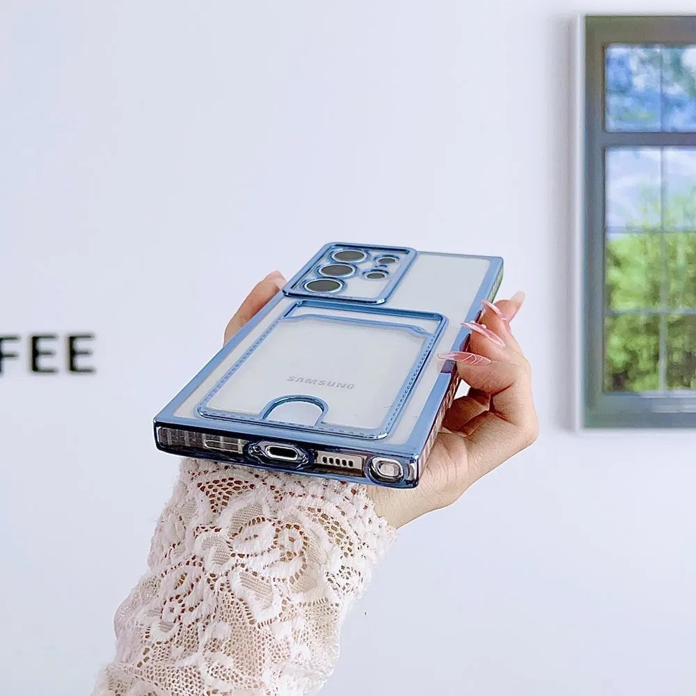 Our transparent card holder phone case is designed to showcase the sleek aesthetics of your Galaxy S24, S23, S22, or S21 series. Made from high-quality TPU material, this case offers a crystal-clear view, allowing the natural beauty of your phone to shine through while providing robust protection.