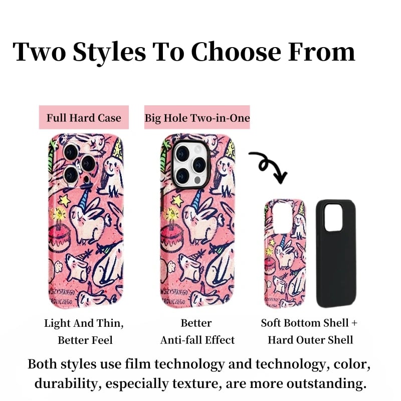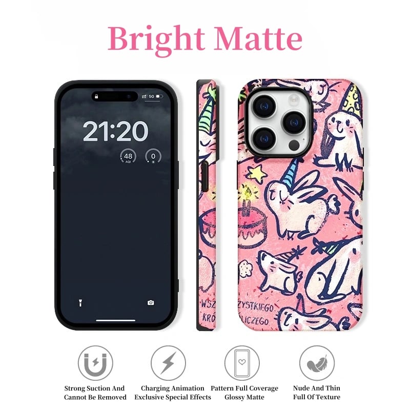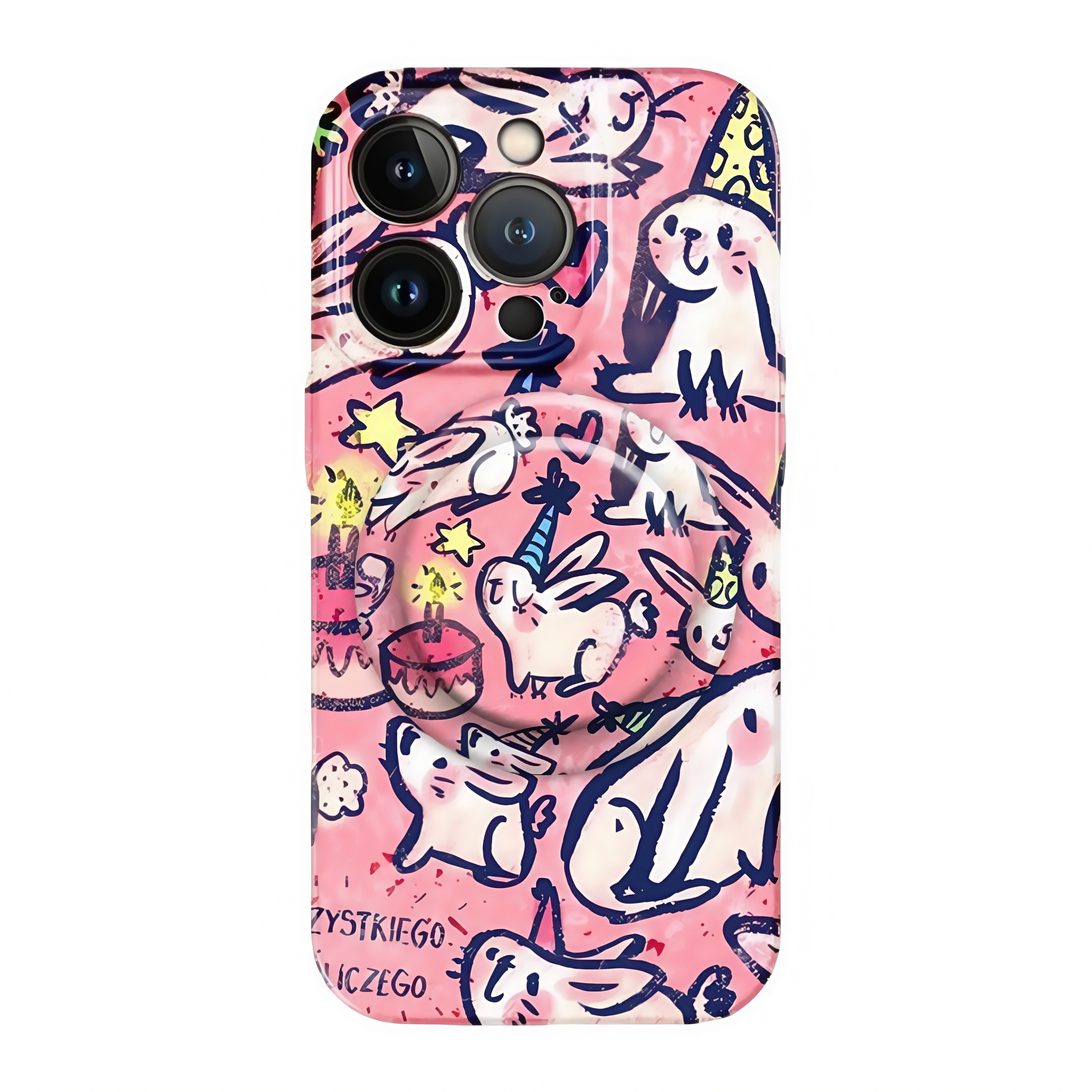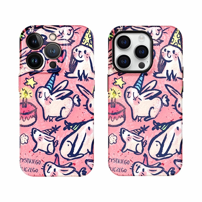 This case combines street-inspired graffiti art with durable full-body coverage. Its vibrant rabbit pattern stands out with attitude while protecting your iPhone from scratches, stains, and impact.