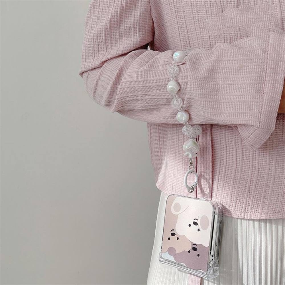 This cute bear phone case brings a playful and charming touch to your Galaxy Z Flip. With a delightful bear design, it adds a whimsical vibe to your device, making it perfect for those who love fun and unique accessories. Its cute features will surely make your phone stand out in any crowd.