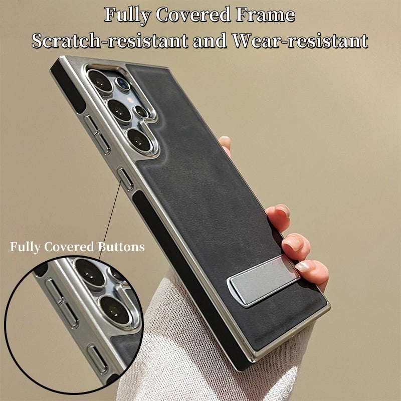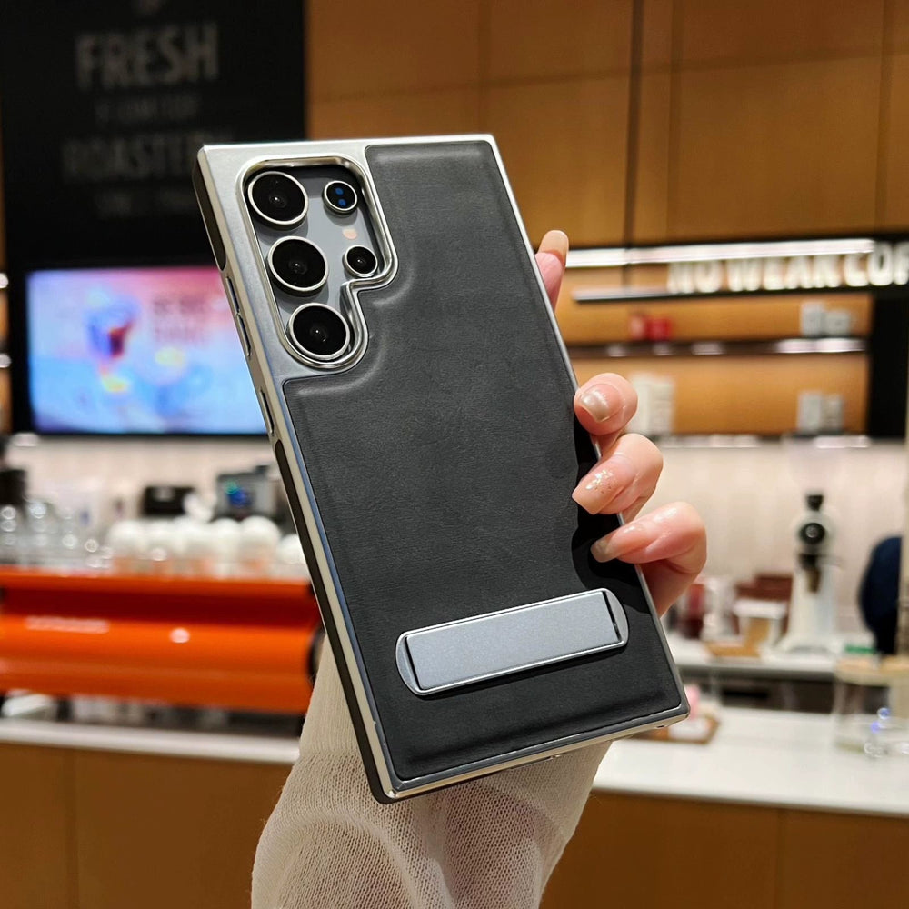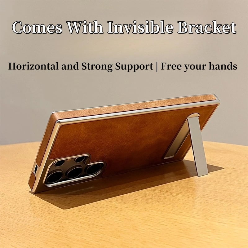 Upgrade your phone’s style and functionality with this Luxury Leather Invisible Metal Bracket Holder Case – where elegance meets practicality!