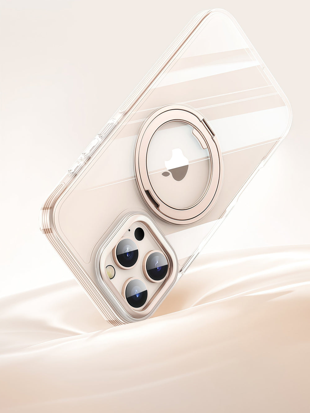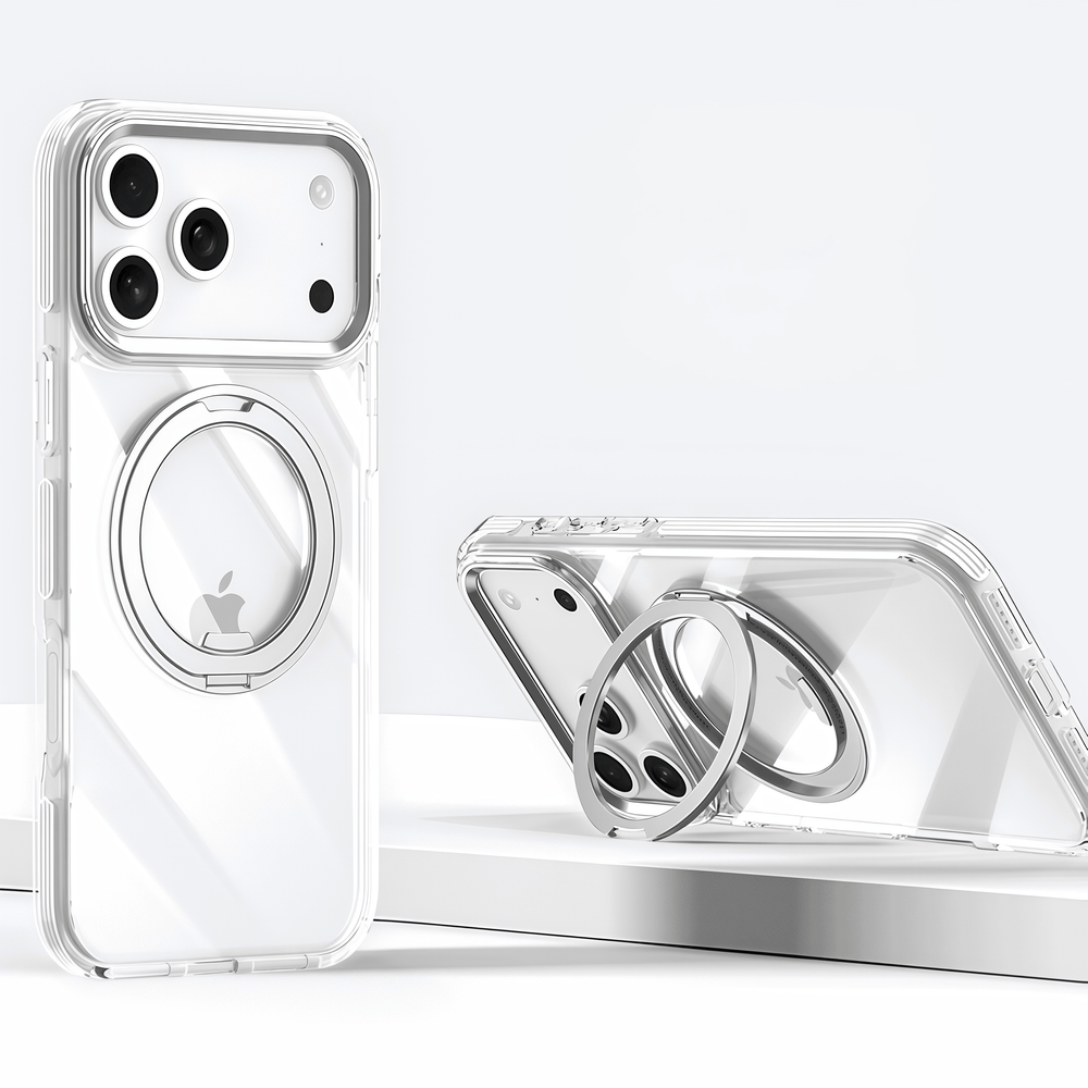 The integrated gear bracket rotates smoothly, giving you freedom to adjust the perfect angle — whether for video calls, movies, or work. When not in use, it folds flat, keeping the grip clean and seamless.