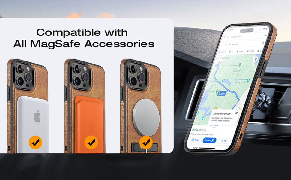 • 【Super Stronger Magnetic】The Iphone Case with a built-in magnetic ring that aligns perfectly with MagSafe chargers, offers a stronger attach experience and faster wireless charging.Supports all MagSafe accessories and third-party Qi-certified wireless chargers (such as car wireless charger,wireless power banks,wireless charger,magnetic wallets,etc).Powerful magnets no longer worry about shaking your phone off a wireless accessory.