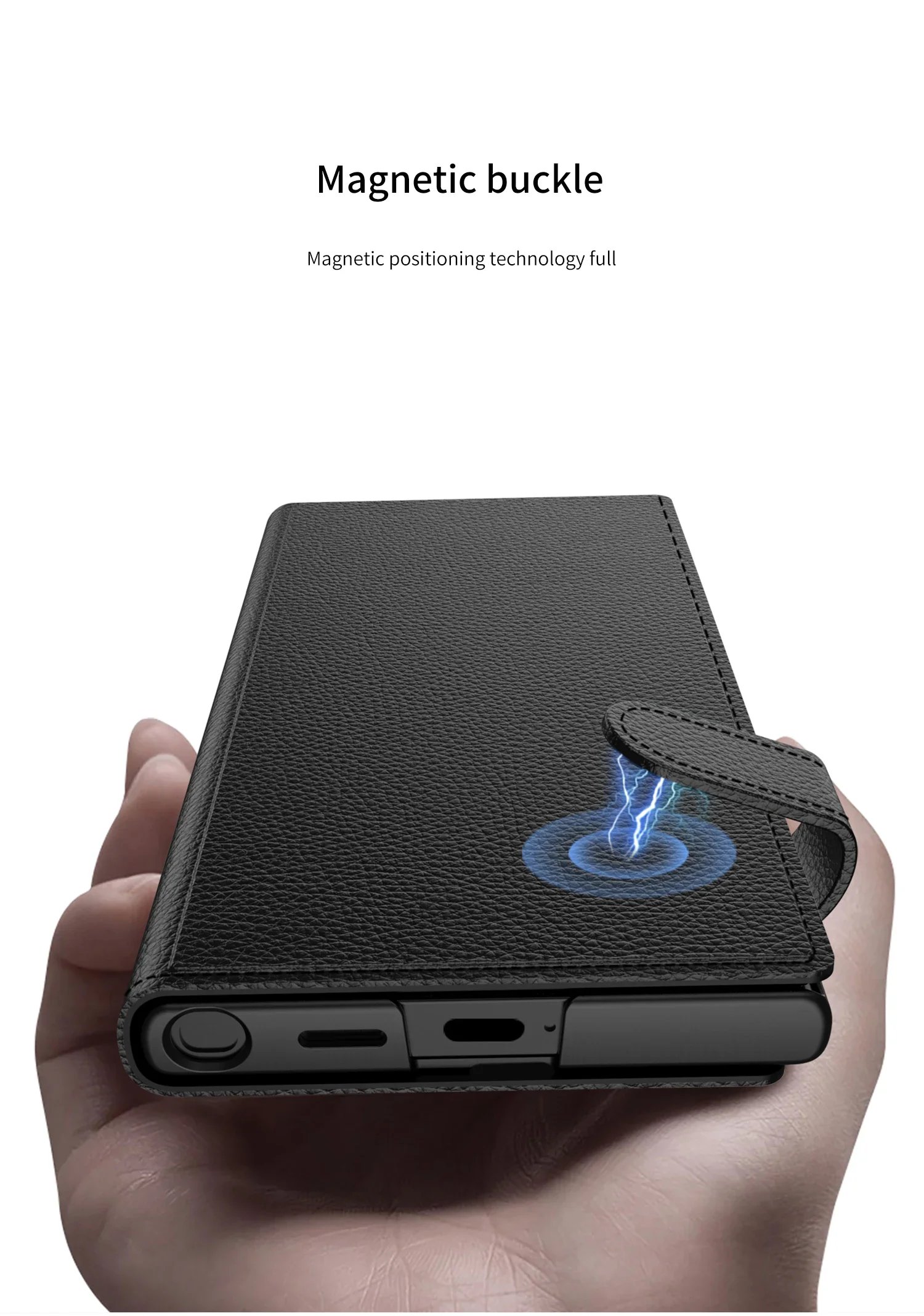 Designed with a high-tech magnetic clasp, this case ensures a firm and secure closure while providing easy access to your phone. The strong magnetic positioning adds a modern and sleek touch to your device.