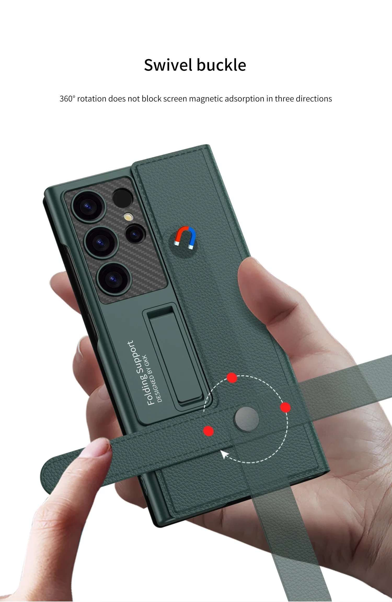The innovative rotating buckle allows for seamless operation without blocking the screen. With three adjustable angles and a magnetic lock, you can enjoy hands-free convenience in any direction.