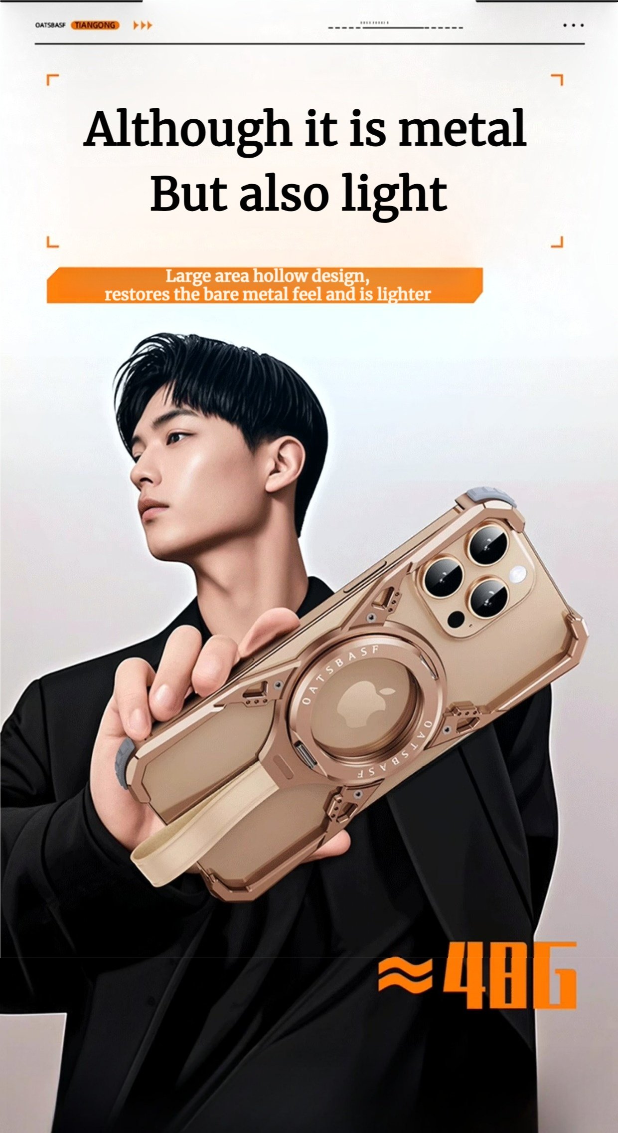Crafted with a premium metal material and a hollowed-out design, this case maintains the sleek, lightweight feel of your phone. Experience a near-bare-hand sensation while enjoying full protection.