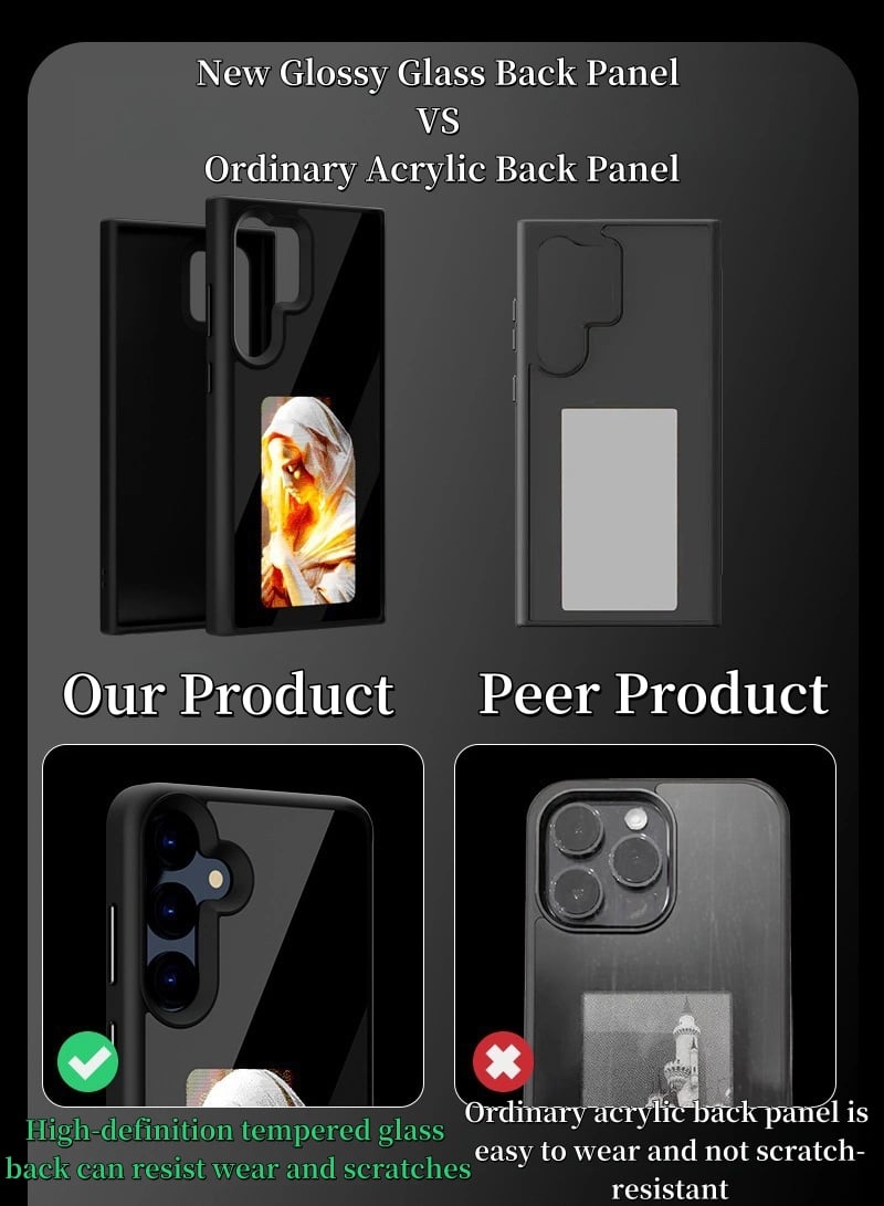 The 9H hardness tempered glass back is scratch-resistant, anti-drop, and far more durable than traditional acrylic cases. It shields your phone from everyday wear and tear while maintaining high clarity and definition. The flexible TPU frame absorbs shocks and resists impacts, ensuring all-round protection.