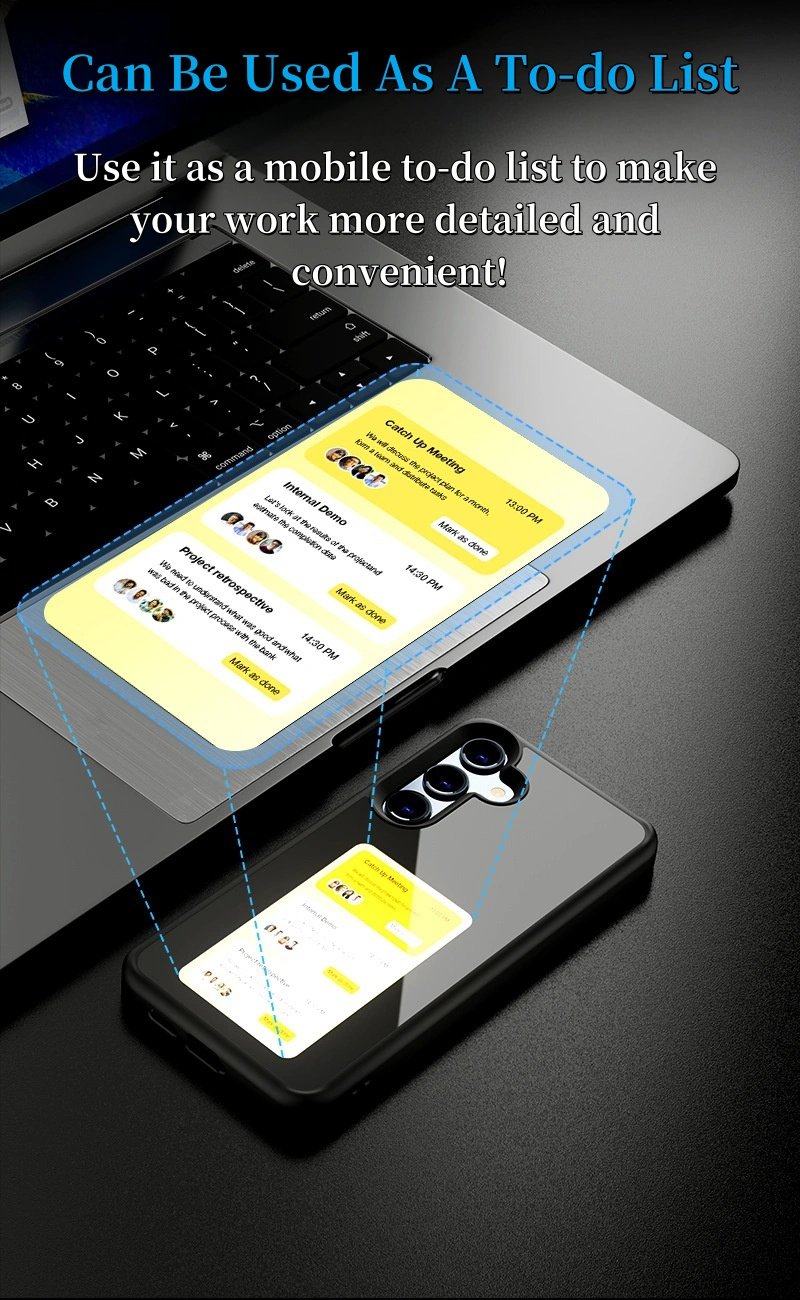 Despite its intelligent features, the case remains slim and stylish. With a thickness of only 13mm, it maintains your phone’s sleek profile while integrating a battery-free, NFC-powered four-color ink screen that updates in real time via the app. Write memos, display to-do lists, or customize with personal images—all without affecting wireless charging.