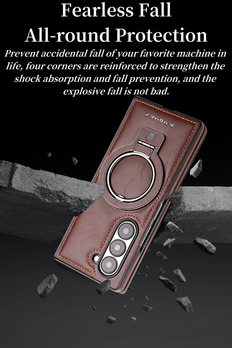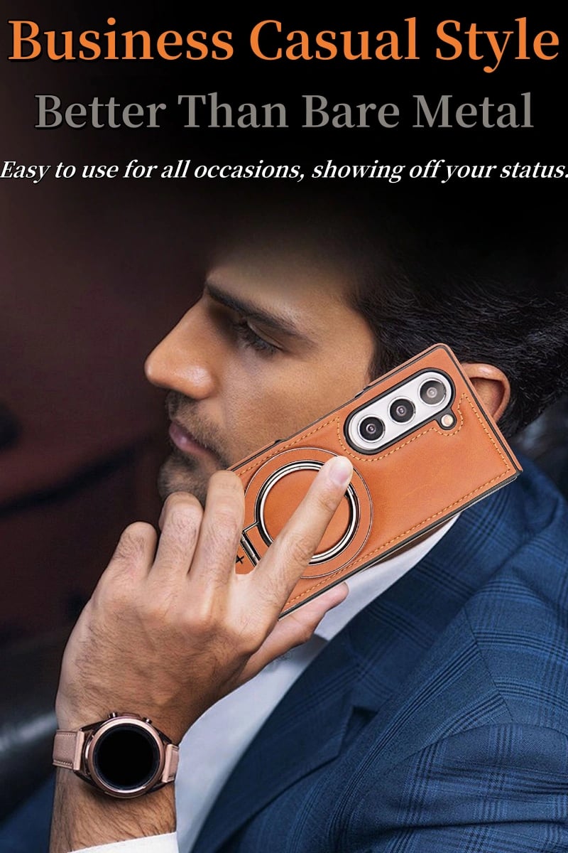 Crafted from premium PU leather with an oil-resistant layer, this case offers both style and protection. It shields your device from scratches, fingerprints, and minor drops, ensuring your Galaxy Z Fold stays sleek and secure.