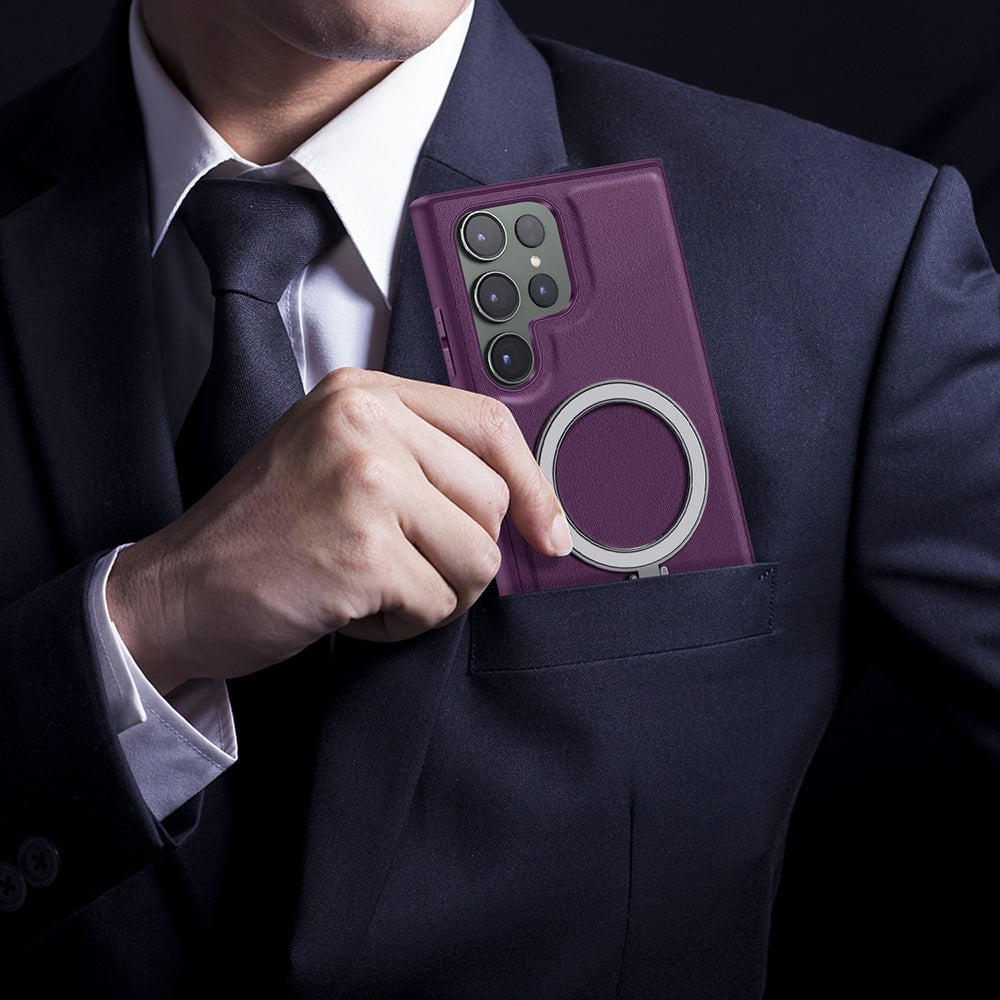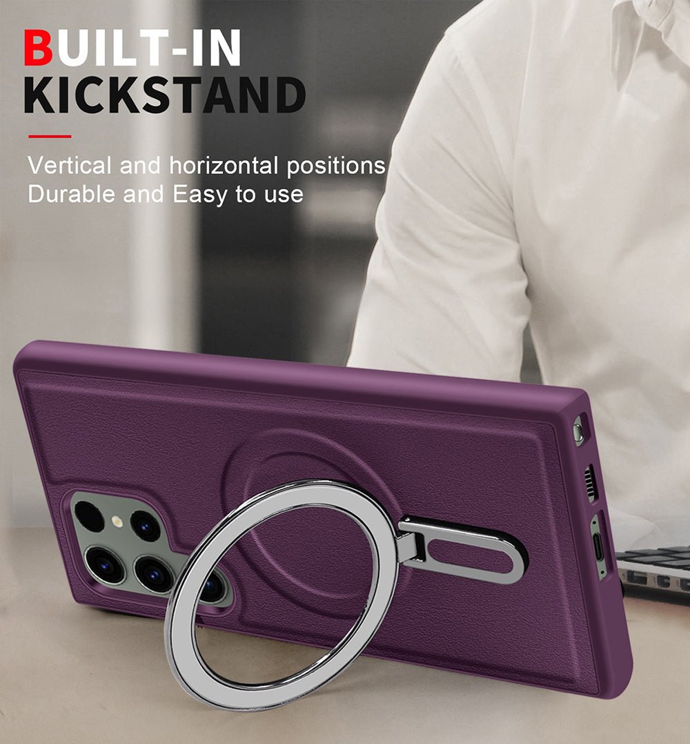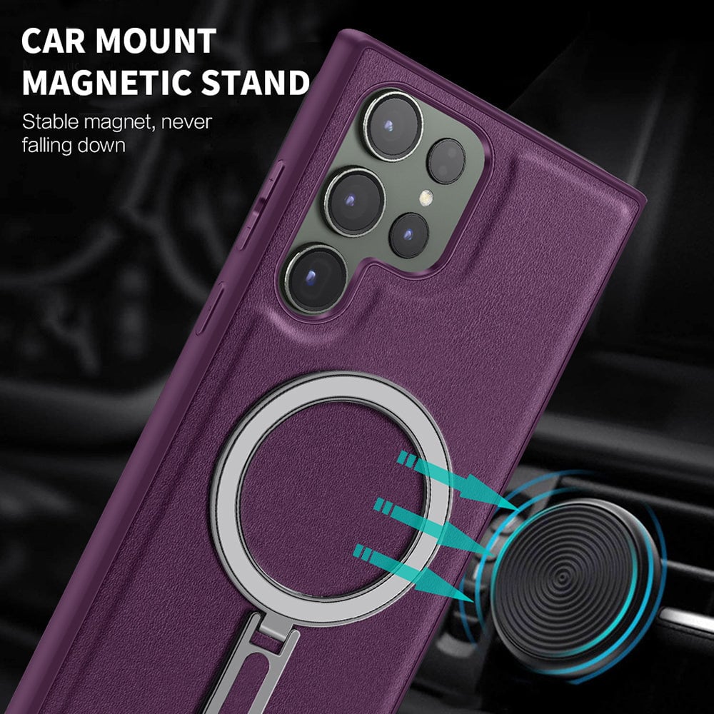 Upgrade your Samsung Galaxy with this Metal Magnetic Bracket Leather Case—combining protection, style, and convenience in one!