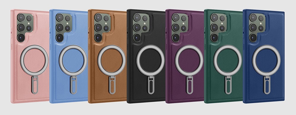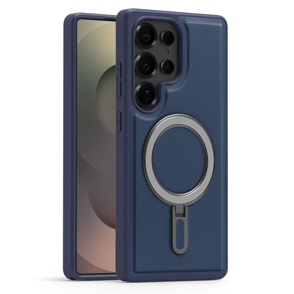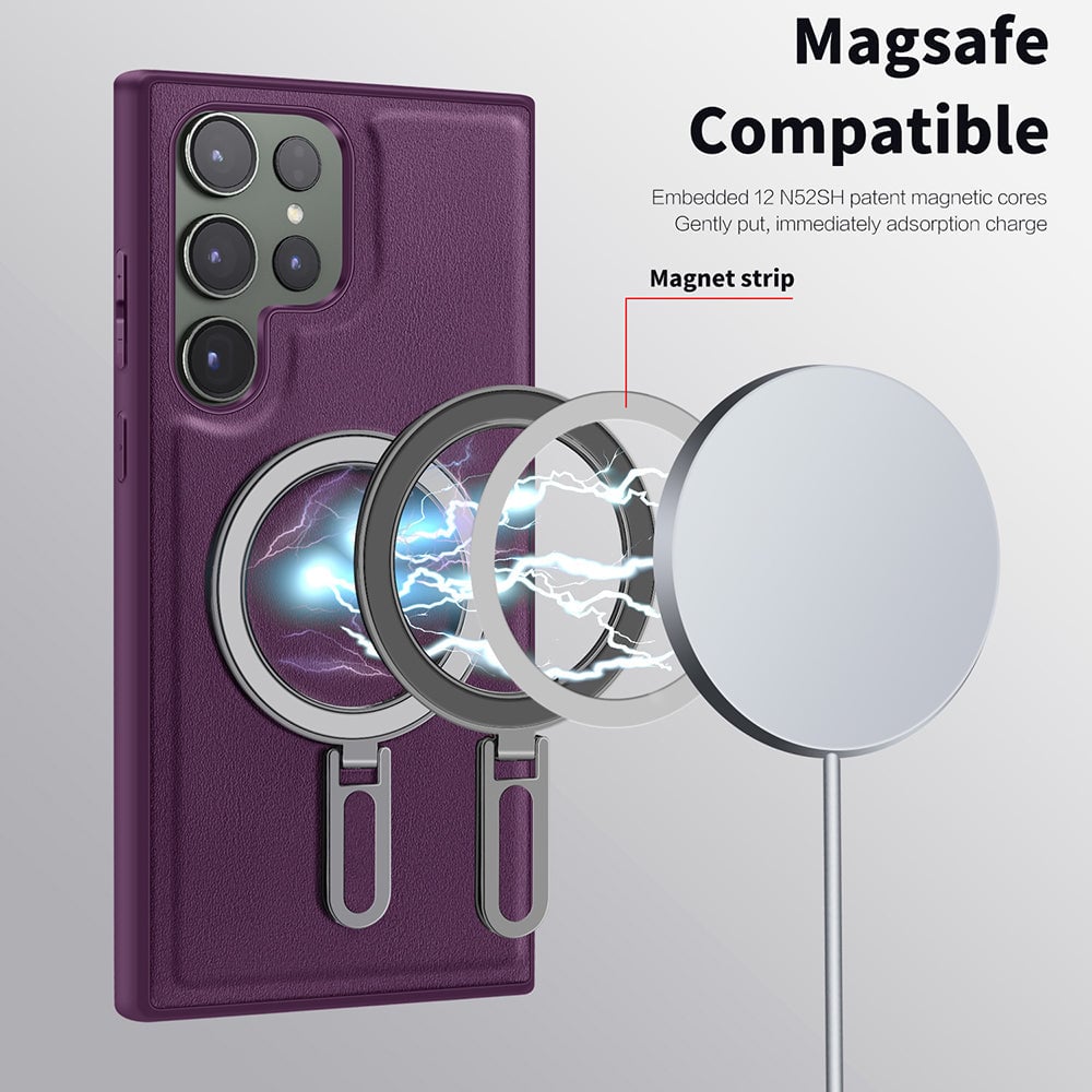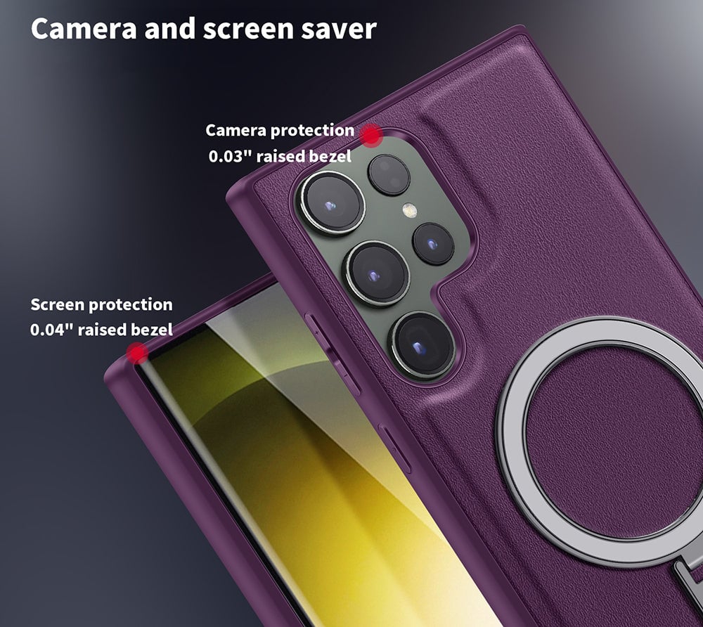 Upgrade your Samsung Galaxy with this Metal Magnetic Bracket Leather Case—combining protection, style, and convenience in one!