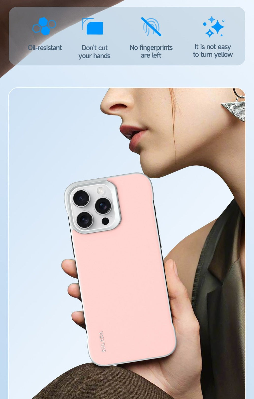 With its borderless design, this case enhances the sleek, minimalist look of your iPhone 15/16 series. The smooth edges add a touch of elegance, providing full coverage without compromising on style. Its slim profile ensures that your phone retains its thin, lightweight feel, making it easy to carry in your pocket or bag.
