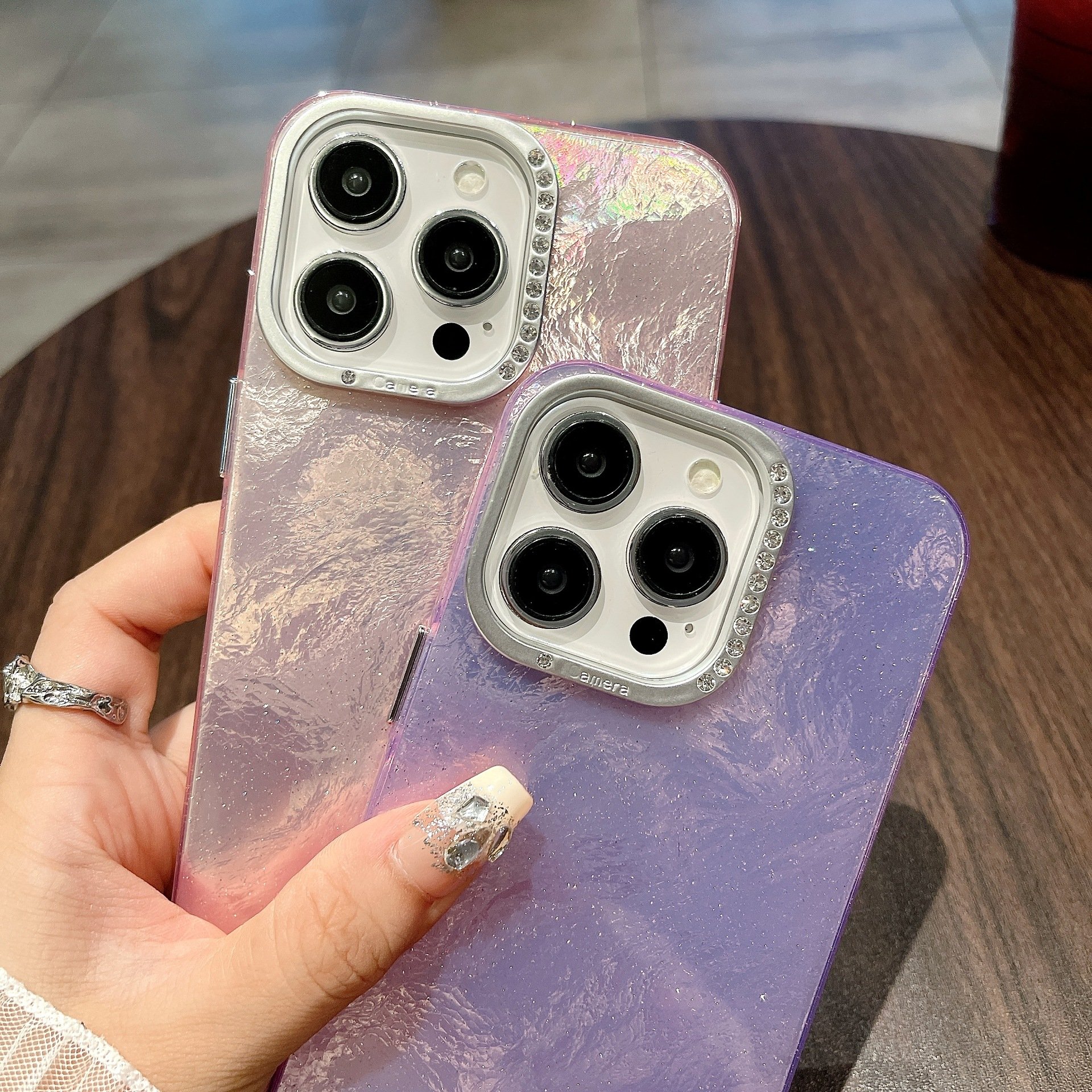 Rhinestone Mirror Frame Foil Texture Protective Case Compatible With iPhone 11/12/13/14/15/16 series