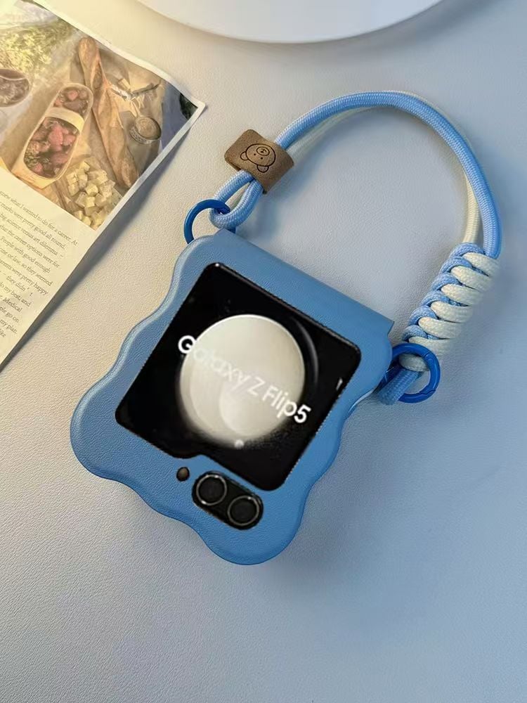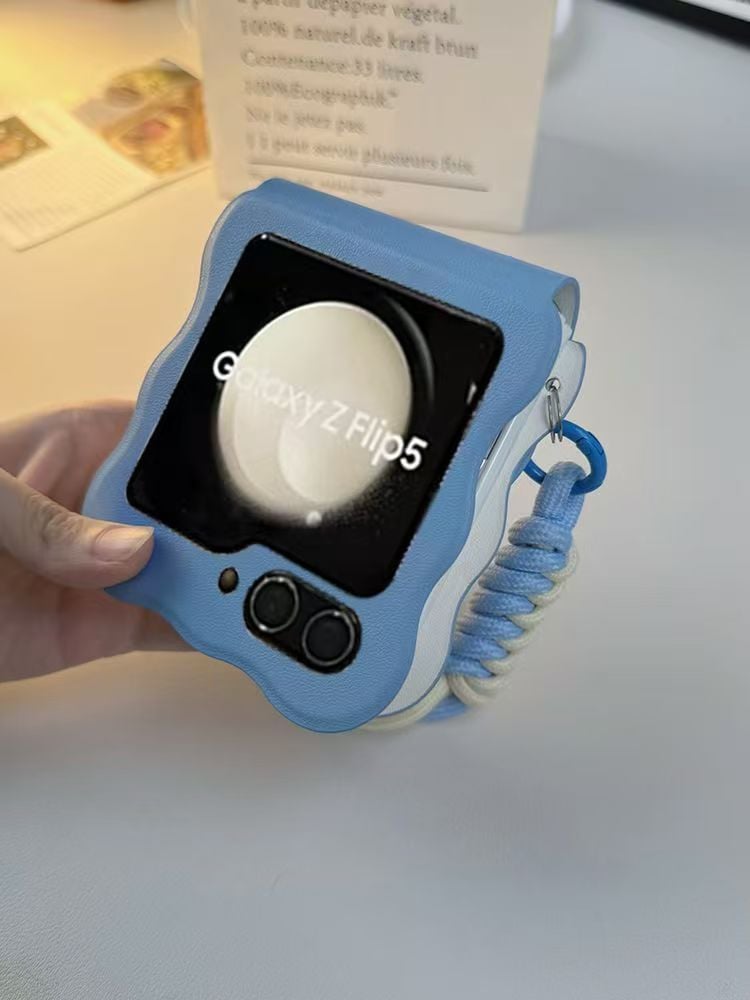 Embrace sophistication with this sky blue phone case, featuring a unique wave texture pattern that exudes elegance. Its soft, imitation leather material provides a premium feel, perfect for adding a touch of luxury to your Galaxy Z Flip.