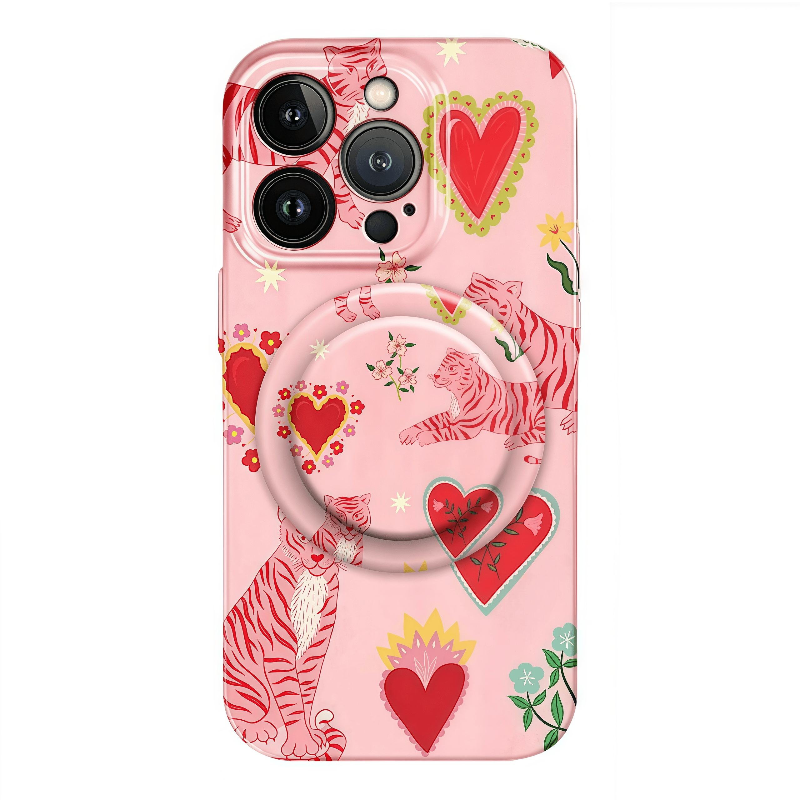 This case blends a playful pink tiger-and-heart pattern with magnetic precision and dependable protection. Designed for those who love to express bold personality through stylish tech accessories.