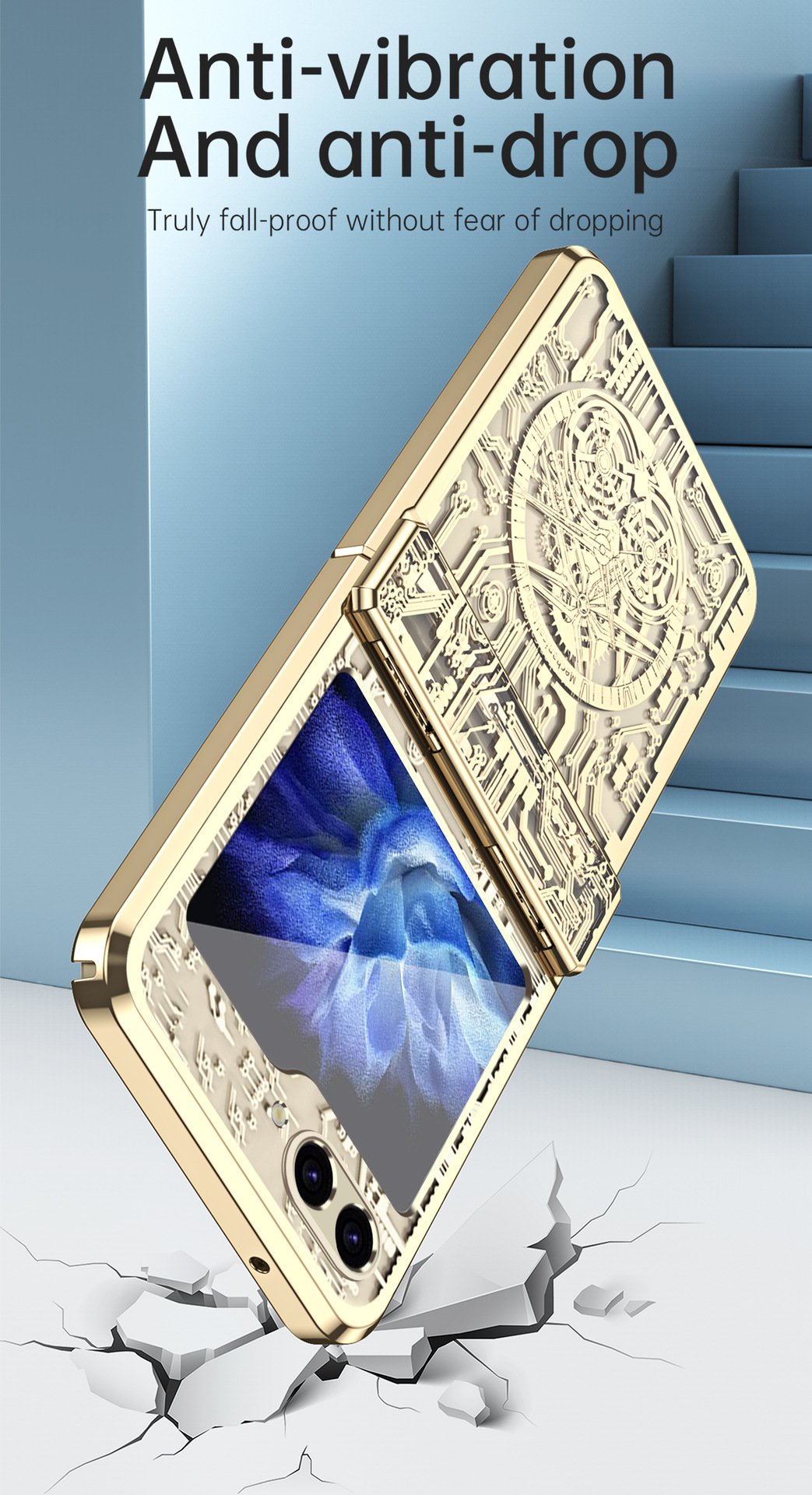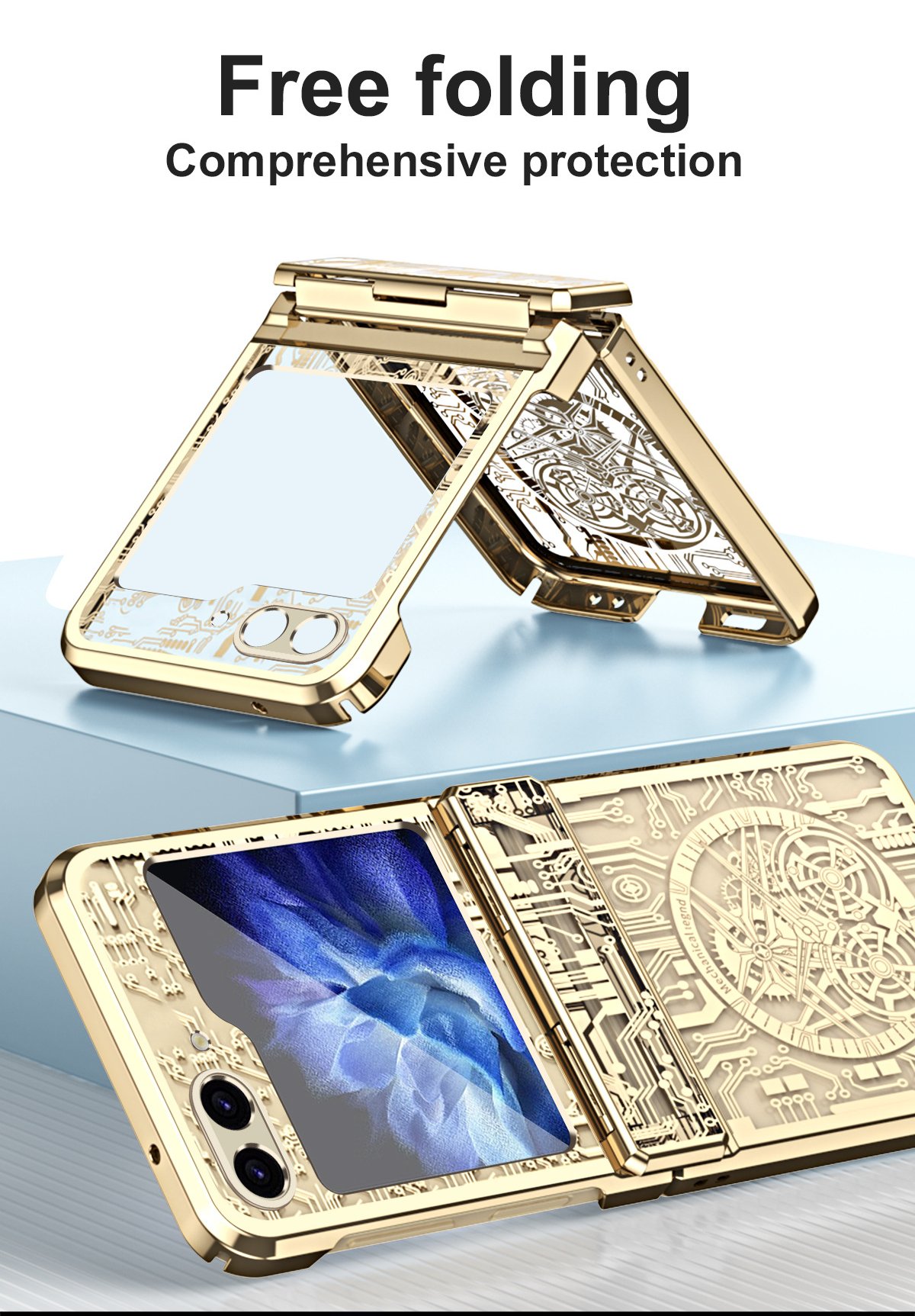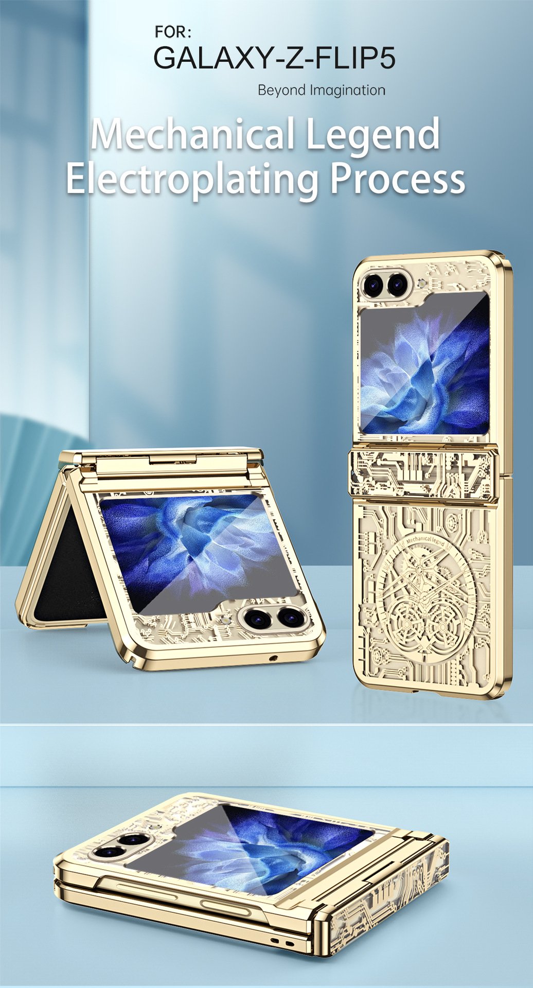 👑【Unique Design】Hard PC hybrid plating brings you a comfortable touch, while the stylish mechanical design appearance is specially designed for your precious for Samsung Galaxy Z Flip 3/Z Flip 4/Z Flip 5/Z Flip 6/Z Flip 7.