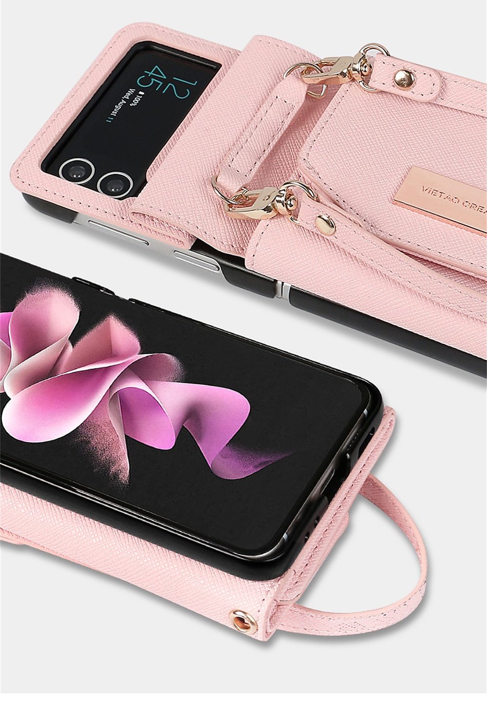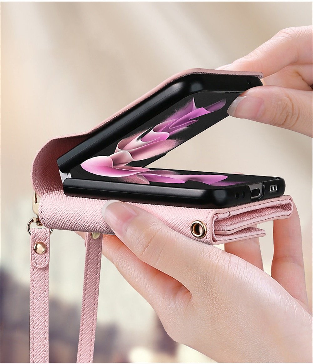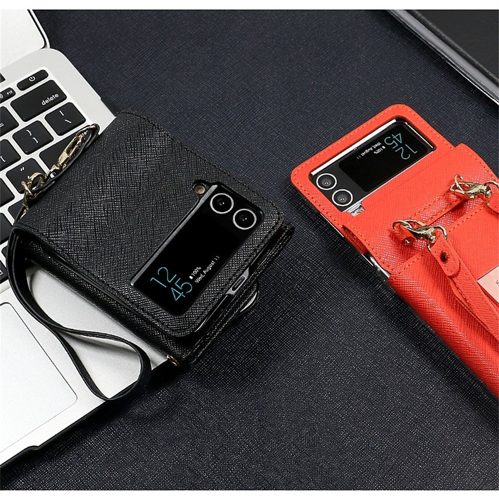 Enhance the look of your Galaxy Z Flip 3, 4, 5, or 6 with our cross-grain wallet-style handbag phone case. This case combines fashion and functionality, featuring a luxurious texture and a sleek design that complements any outfit. The elegant cross-grain pattern adds a touch of sophistication, making it perfect for both casual and formal occasions.